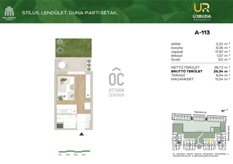 Projekt bemutatásaA Budapest XI. kerületében, a Barázda utcában megvalósuló Újbuda Residence nem csupán egy új építésű lakópark, hanem egy olyan innovatív fejlesztés, amely kivételes lehetőséget kínál mindazok számára, akik otthonukat vagy befektetésüket egy dinamikusan fejlődő, mégis nyugodt környezetben képzelik el.Ez a modern, 240 lakóegységet magában foglaló fejlesztés Újbuda folyamatosan megújuló környezetében, a Duna-parttól mindössze egy karnyújtásnyira található. Az épület kiváló választás lehet azok számára, akik a fővárosban szeretnének élni, de mégis közel a természethez és a vízparthoz. Az új lakások mellett tárolók és gépkocsi beállók is rendelkezésre állnak, ezzel biztosítva a lakók maximális kényelmét és praktikus életvitelét. A változatos méretű lakások között mindenki megtalálhatja a számára legmegfelelőbbet, legyen szó kisebb vagy nagyobb lakóterületről.A fejlesztés keretében egy fiatalok számára ideális, kisebb lakóegységekből álló épület is megvalósításra kerül, ami különösen vonzó lehet a fiatalabb generációk számára, akik a város nyüzsgése mellett szeretnének élni, ugyanakkor közel a természethez és a szabadidős tevékenységekhez.Az Újbuda Residence fejlesztésében változatos méretű és elrendezésű lakások kerülnek kialakításra, a 27 m2-es stúdiólakásoktól egészen a 70 m2-es, háromszobás lakásokig. Az épület alsóbb szintjein található lakások saját privát kertkapcsolattal rendelkeznek, míg a felsőbb emeletekről lenyűgöző panoráma nyílik a Gellért-hegyre. Minden lakás erkélyes, így a lakók élvezhetik a szabad levegő nyújtotta kényelmet és a környező zöldterületek látványát.A lakások kialakításánál elsőrangú belsőépítészeti megoldásokat alkalmaztak, amelyek több mint 4000 korábbi vásárlói visszajelzés alapján kerültek kidolgozásra. A belső anyagválasztékot a legjobb minőségű alapanyagokból állították össze, a lakások pedig egyedi igények szerint is alakíthatók, így mindenki megtalálhatja a számára legideálisabb megoldást.A rozsdaövezeti besorolásnak köszönhetően a vásárlók 5%-os áfa-visszaigénylésre is jogosultak, ami tovább növeli a fejlesztés vonzerejét.Az Újbuda Residence ideális választás fiatal egyedülállók, párok, kisgyermekes családok, valamint középkorúak számára, akik olyan lakóhelyet keresnek, ahol egyszerre élvezhetik a város nyújtotta lehetőségeket és a természet közelségét. A fejlesztés fiatalos, modern megjelenése, valamint a tágas parkok, zöldterületek biztosítják a nyugodt és kellemes életvitelt.A lakópark egyediségét tovább növeli a lakók számára kialakított tágas, dús növényzettel borított belső kert, amely tökéletes helyszínt biztosít a pihenésre és a kikapcsolódásra. Az épület alsóbb szintjein elhelyezkedő lakások privát kertkapcsolata pedig még inkább otthonossá varázsolja az itt eltöltött időt.