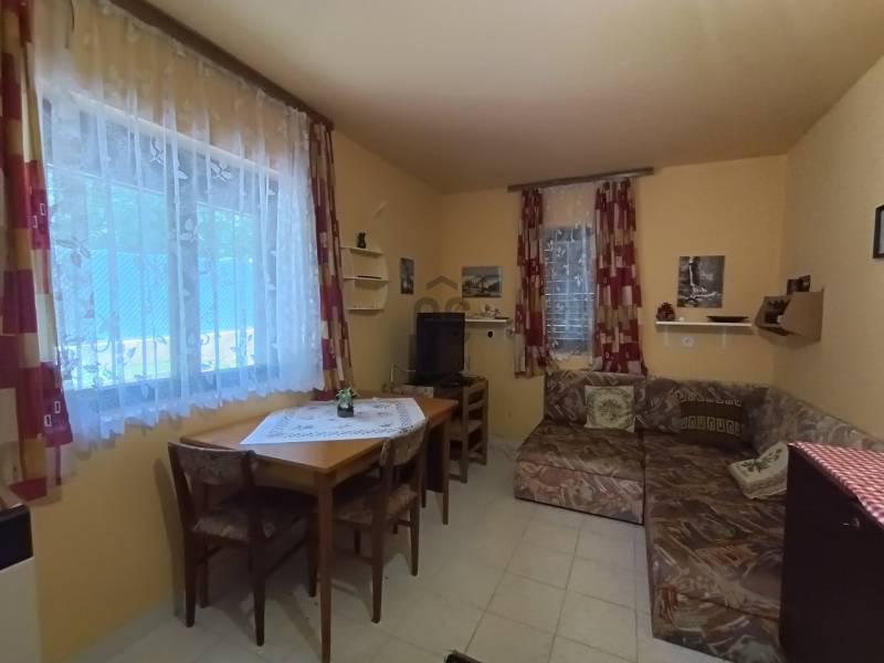 Pálköve, a maga elszigetelt békevilágával egy olyan szeglete a Balatonnak, ahová csak azok jönnek, akik nem szeretik a turisták hadát, a nyüzsgést és a forgalmat.Itt, egy hatalmas tölgyerdőben, apró kis nyaralók bújnak meg szerényen, egymás mellett, egymásra figyelve és tisztelve mindazt, amitől emberként tudunk létezni az élet forgatagában.Pálkövén -pont ezért- rengeteg ikerház épült, egy időben csak ezeket engedélyezték, jelen esetben is egy ikerház-fél keresi új nyaralóit. A ház maga a \'70-es évek végén épült, tégla falazatú, kétszintes épület, amelynek mindkét fele önálló helyrajzi számon található, önálló jogi egység!Hasznos alapterülete 85 nm, ez a földszinten két lakószobát, egy fürdőszobát és egy konyhát jelent, az emeleten pedig egy kis galériát, egy hatalmas hálószobát és egy kisebb háztartási helyiséget. A bejárat előtt nagy terasz ad lehetőséget élvezni a kristálytiszta levegőt.Egy kis köz végén található, ahol egyáltalán nincsen átmenő forgalom, az utcácskában kizárólag idősebb tulajdonosok vannak, akik ritkán járnak le, így hangos szóval, zavaró zenével itt véletlenül sem találkozhat a látogató!Az ingatlan szerkezetileg tökéletes állapotú, hangulatában pedig könnyen változtatható a jelenlegi Balatoni retró egy frissebb, letisztultabb stílusra. Azonnal birtokba vehető és élvezhető!A kert 220 nm-es, amely térkövezett, műfűvel borított és virágágyásokkal gazdagított. Az épület mögött fedett beálló lett kialakítva, ahol akár 2 autó is parkolhat.Egyedi mérőórák garantálják a teljes függetlenséget a szomszédtól, a csatorna közmű kivételével minden adott, az épület télen is lakható, fűtését gáz üzemű konvektorok biztosítják.A strand gyalogosan 5-10 perc, csodálatos természeti környezetben.Pálköve hivatalosan Kővágóörshöz tartozó kis nyaralófalu, Révfülöp és Balatonrendes szomszédságában.