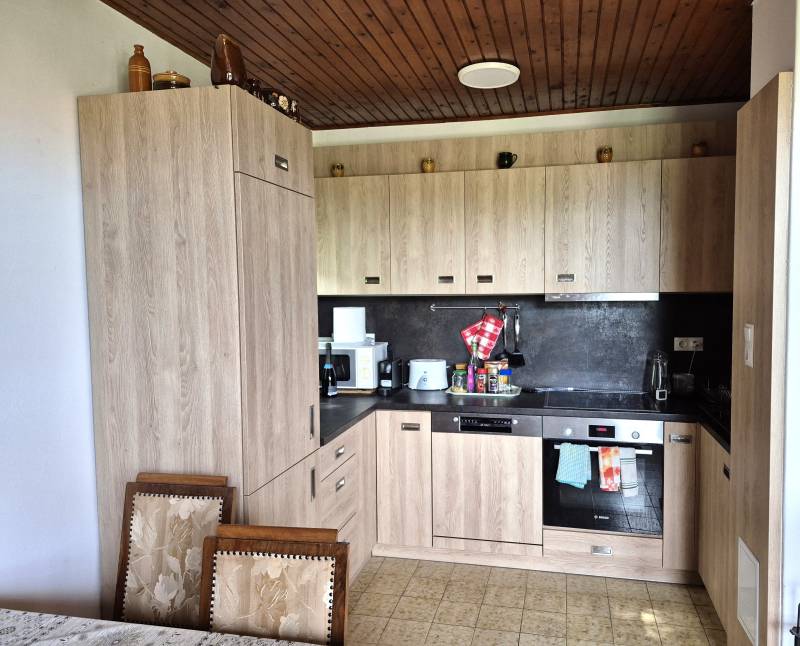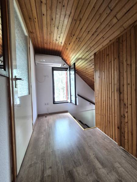 ÁBRAHÁMHEGYEN PARTKÖZELI, BELTERÜLETI, BŐVÍTHETŐ NYARALÓ ELADÓA strandtól mindössze 800 méterre vált eladóvá ez az egész évben használható, jó állapotú, folyamatosan karbantartott nyaraló. Gyors birtokbaadás lehetséges.A 60 m2-es, 1 + 2 szobás, kétszintes téglaépítésű nyaraló tömegközlekedéssel is könnyen megközelíthető, vasútállomás 750 m, buszmegálló 700 m távolságra érhető el. A nyolcvanas években épült ház homlokzata szigetelt (8 cm), a tető betoncseréppel fedett, nyílászárói fa gyártásúak, zsalugáterekkel ellátottak. Klíma is elhelyezésre került. Fűtését a nappaliban elhelyezett kandalló és infrapanelek biztosítják. Helyiségei: a földszinten egy amerikai konyhás nappali és egy kádas fürdőszoba került kialakításra. A nappaliba a 14,4 m2-es déli tájolású teraszról lehet belépni. A tetőtérben 2 hálószoba található, az egyik erkélykapcsolatos. A külön külső bejárattal rendelkező 10 m2-es tárolóból (korábban garázs volt) közelíthető meg a 14 m2-es, ablakos pince, amely tökéletes megoldást nyújt a kertben termő gyümölcsök tárolására.Közművek: villany, víz, csatorna bevezetve, gáz a telken belül érhető elA saroktelek 1023 m2, utcafronti szélessége 28 m. A kert rendezett, ápolt. Számos termő gyümölcsfa és szőlőtőke található benne (alma, őszi- és sárgabarack, dió, szilva, cseresznye). Az udvaron több személyautó parkolása biztosított. Egy fatároló is elhelyezésre került.Lke-01 övezetben fekszik, amelyre a rendezési terv alábbi szabályozása vonatkozik: a telken két épülettömeg létesíthető, legfeljebb kétlakásos lakóépület helyezhető el. A terepszint alatti építmény önállóan is elhelyezhető, amely a megengedett beépítettség legfeljebb 20 %-a lehet.- a maximális beépíthetőség 30 % szabadonálló, kialakult módon - megengedett legnagyobb építménymagasság 4,5 m (földszint + tetőtér)- kötelező zöldfelületi arány 50 %Tulajdoni lapon: belterület, „kivett üdülőépület, udvar” megnevezésű, tehermentes ingatlan.A Balaton északi partján, a Badacsony-hegytől keletre, Révfülöp községtől 5 km-re, a 71-es út mentén található Ábrahámhegy, amely a Balaton egyik legkedveltebb fürdőhelye, mert egyrészt hegyei félkör alakban nyugatról és északról elzárják, védik a szelektől, másrészt egy völgykatlanban húzódik és így klímája melegebb a környezeténél. Erdős hegyoldalak, szép telepítésű szőlők, sűrű tölgyesek, tisztások váltják egymást. A természet, az ember és a táj harmóniája, a tó ezer arca, a csend és a nyugalom jellemzi.Építész- és ingatlanközvetítő irodánk minden hiteles szakmai segítséget meg tud adni, mellyel segíteni tudjuk döntését. Kérje az ingatlan részletes tájékoztató anyagát! Kövesse Balatoniingatlanguru facebook és balatoni_ingatlanguru instagram oldalunkat. Balatoni ingatlanguru – több mint közvetítő