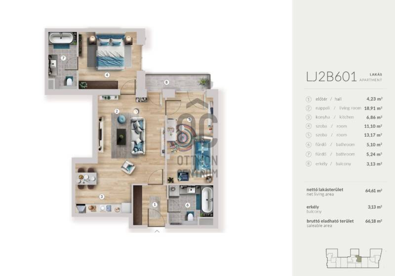 Projekt bemutatásaProjekt leírásA 147 lakásos My Garden 2 lakófejlesztés Budapest XIII. kerületének zöldövezeti részén, a Rákos-patak szomszédságában épül, ahol a modern élet és a természet harmóniája egyedülálló lakóélményt biztosít.A My Garden második ütem lakásai is magas szintű környezettudatosságot és kiemelkedő műszaki tartalmat képviselnek. Olyan fenntarthatósági megoldásokat alkalmazunk a lakóparkon, mint a megújuló energiaforrások, környezettudatos anyaghasználat, esővíz-újrahasznosítás, szelektív építési hulladékkezelés és felület hűtés-fűtés. A háromrétegű nyílászárók kiváló hő- és hangszigetelést biztosítanak, így a Le Jardin második ütemének lakásai alacsony fenntartási költségekkel és optimális komfortérzettel bírnak majd.A Váci úttól mindössze 10 percre található. A környék kifejezetten jó infrastruktúrával rendelkezik: oktatási intézményekben, bevásárlási lehetőségekben szociális-, sport- és egészségügyi létesítményekben bővelkedik a terület.A 6. emeleti penthouse lakásokból pazar kilátás nyílik a budai hegyekre, a kényelmet pedig biztosítja, hogy a nagy teraszon jacuzzi-nak kialakítható hely is található.A lakásokat átlagon felüli műszaki tartalom, energiahatékony- és gazdaságos üzemeltetés jellemzi.Környezettudatos beruházás, melynek részei a teljes mértékben- megújuló energián alapuló gépészeti megoldások,- a környezettudatos anyaghasználat,- a szelektív hulladékkezelés,- a környezettudatos vízfelhasználás,- az esővíz újrahasznosítása,- illetve a felület hűtés-fűtés.KÖZÖSSÉGI ELŐNYÖK:- közösségi nappali,- Business Corner,- közösségi BBQ hely,- fészer,- csomagpont.A fizetési ütemezés két részletben: 20% szerződéskötéskor és a fennmaradó 80% százalék a használatba vételi engedély kiadása után fizetendő a projektet finanszírozó bank felé.További információért keressen bizalommal!