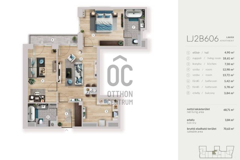 Projekt bemutatásaProjekt leírásA 147 lakásos My Garden 2 lakófejlesztés Budapest XIII. kerületének zöldövezeti részén, a Rákos-patak szomszédságában épül, ahol a modern élet és a természet harmóniája egyedülálló lakóélményt biztosít.A My Garden második ütem lakásai is magas szintű környezettudatosságot és kiemelkedő műszaki tartalmat képviselnek. Olyan fenntarthatósági megoldásokat alkalmazunk a lakóparkon, mint a megújuló energiaforrások, környezettudatos anyaghasználat, esővíz-újrahasznosítás, szelektív építési hulladékkezelés és felület hűtés-fűtés. A háromrétegű nyílászárók kiváló hő- és hangszigetelést biztosítanak, így a Le Jardin második ütemének lakásai alacsony fenntartási költségekkel és optimális komfortérzettel bírnak majd.A Váci úttól mindössze 10 percre található. A környék kifejezetten jó infrastruktúrával rendelkezik: oktatási intézményekben, bevásárlási lehetőségekben szociális-, sport- és egészségügyi létesítményekben bővelkedik a terület.A 6. emeleti penthouse lakásokból pazar kilátás nyílik a budai hegyekre, a kényelmet pedig biztosítja, hogy a nagy teraszon jacuzzi-nak kialakítható hely is található.A lakásokat átlagon felüli műszaki tartalom, energiahatékony- és gazdaságos üzemeltetés jellemzi.Környezettudatos beruházás, melynek részei a teljes mértékben- megújuló energián alapuló gépészeti megoldások,- a környezettudatos anyaghasználat,- a szelektív hulladékkezelés,- a környezettudatos vízfelhasználás,- az esővíz újrahasznosítása,- illetve a felület hűtés-fűtés.KÖZÖSSÉGI ELŐNYÖK:- közösségi nappali,- Business Corner,- közösségi BBQ hely,- fészer,- csomagpont.A fizetési ütemezés két részletben: 20% szerződéskötéskor és a fennmaradó 80% százalék a használatba vételi engedély kiadása után fizetendő a projektet finanszírozó bank felé.Átadás várható dátuma: 2027. II. negyedévTovábbi információért keressen bizalommal!