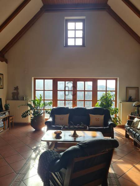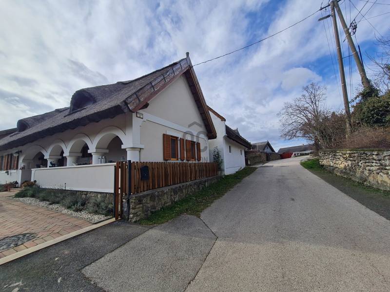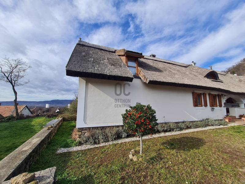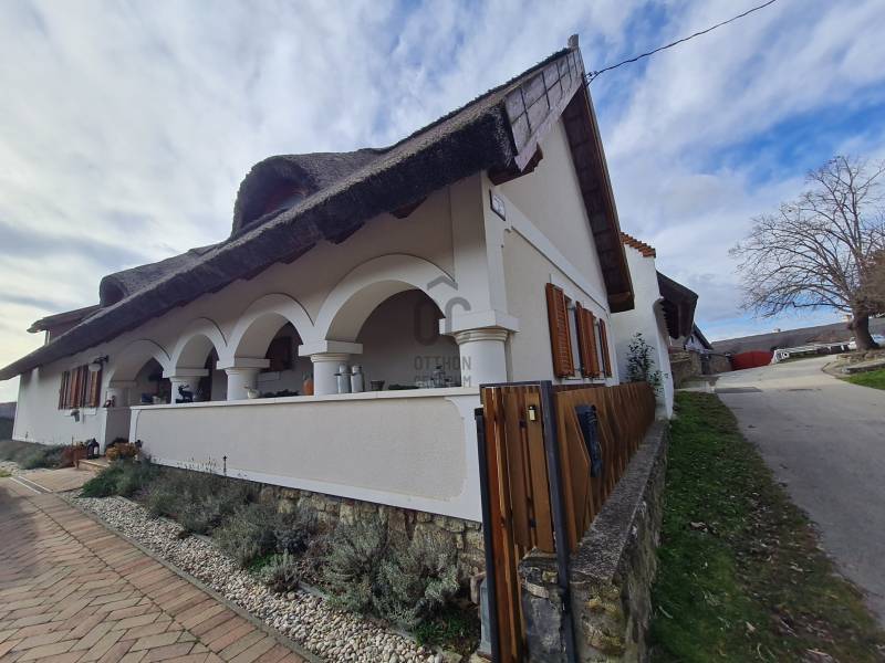 Szigligeten, szinte a vár tövében vált eladóvá ez a 2003-ban épült családi ház.A ház tervezése és kivitelezése kapcsán - a helyi építési szabályzatot és a műemlékvédelmi előrírásokat figyelembe véve - sikerült egy olyan minőségi ingatlant létrehozniuk a tulajdonosoknak, mely minden szempontból illeszkedik az Ófaluban egymás mellett sorakozó nádfedeles házakhoz.Az épület egy 376 négyzetméteres területen kapott helyet, porotherm téglából épült.Földszinti alapterülete 120 m2, a tetőtere pedig további 80 m2-en beépíthető.Elosztását tekintve az alsó szinten egy nagy nappali, konyha és étkező, hálószoba, fürdőszoba, mosdó és háztartási helyiség került kialakításra, a tetőtérben pedig további 80 m2-es jelenleg egybefüggő helyiség áll rendelkezésre további szobák kialakítására.Az épütet nádtetős, mely belső kialakításánál fagerendás parasztfödémet kapott és hőszigetelt fa nyílászárókat.Fűtése kombi-Vaillant kazánnal történik, melyet egy gyönyörűen rakott cserépkályha egészít ki a nappaliban.Elhelyezkedését tekintve Szigliget központi részén található, pár perces sétatávra a helyi óvódától, iskolától, bolttól, éttermektől. A strandtól 5 perces autóútra van, de a ház nappalijából és a telekről is van egy kis részpanoráma a Balatonra.A körbekerített, zárt udvaron egyszerre több autó egyidejű parkolása is lehetséges.Az ingatlan állandó lakhatásra, családi nyaralónak, de akár turisztikai szempontból is tökéletes befektetés leendő tulajdonosai részére!Amennyiben kérdése merülne fel az ingatlannal kapcsolatban vagy szeretné azt megtekinteni, kérem keressen megadott elérhetőségeim egyikén!