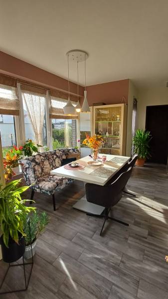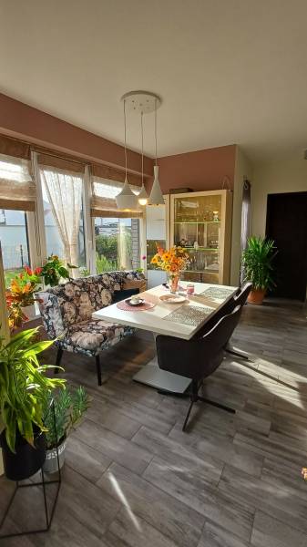 Modern családi ház eladó Zsámbék kedvelt lakóparkjában – csak költözni kellZsámbék újépítésű részén, egy rendezett, zárt lakóparkban kínálunk megvételre egy önálló családi házat, mely osztatlan közös tulajdonú, de jogilag teljesen rendezett. A 131 m²-es, kiváló elosztású otthon egy 437 m²-es, saját használatú, gondozott telken helyezkedik el, melyen három autó számára is kényelmes parkolási lehetőség biztosított.A ház korszerű, energiatakarékos megoldásokkal lett felszerelve:• Kondenzációs kazán padlófűtéssel a földszinten és radiátoros hőleadással az emeleten• 2 db hűtő-fűtő klíma• Elektromos kandalló a nappaliban• Telepített napelemrendszer, így a rezsiköltségek minimálisakA kivitelezés során magas minőségű anyagokat használtak:• 15 cm homlokzati szigetelés• 5 cm aljzatszigetelés• 15 cm födémszigetelés + 15 cm szarufa közötti szigetelés• Tégla falazat, modern dizájnA tágas nappaliból egy hangulatos, fedett teraszra juthatunk ki, amely közvetlen kapcsolatban áll a kerttel – ideális helyszín a pihenésre vagy baráti összejövetelekre.Az ingatlan bútorozottan eladó, a beépített bútorokon kívül, nappali - étkező -hálószoba és gardrób szoba bútoraival, áruk 2 millió Ft.A lakópark családbarát környezetet kínál, saját kis játszótérrel és barátságos közösséggel, ideális választás mind családosoknak, mind nyugodt környezetre vágyóknak.Ez az ingatlan ideális választás azoknak, akik egy azonnal költözhető, modern, energia hatékony otthont keresnek nyugodt, mégis jól megközelíthető környéken.
