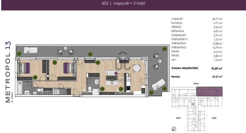 Lőportárdűlőn a Belváros - Városliget – Margitsziget – Westend City Center – Váci úti Irodafolyosó vonzásában kínálok megvételre egy bruttó 112,4 nm-es amerikai konyhás nappalival, két hálószobával és egy 59 nm-es sarok terasszal rendelkező ingatlant, prémium minőségben, mely extra anyagok beépítésével magas minőséget képvisel!Az épület korszerű hang és hőszigetelésének, a nyílászáróknak és hőszivattyús hűtési-fűtési rendszernek köszönhetően AA+ energetikai besorolásban, amely kiemelkedően nagy energiahatékonyságot jelent. Az ablakokon és a terasz ajtón távirányítású elektromos alumínium redőny van felszerelve, mely benne van az árban!INFORMÁCIÓK a 4. ütemről:•Műszaki átadás: 2025. III. negyedév•AA+ ENERGETIKAI BESOROLÁS (hőszivattyús)•MENNYEZETI HŰTÉS-FŰTÉS•TÁVIRÁNYÍTÁSÚ ELEKTROMOS ALU.REDŐNYÖK•ZÁRT, PARKOSÍTOTT KERT•PRÉMIUM MINŐSÉG, KORSZERŰ MŰSZAKI TARTALOM•VILÁGOS TEREK, MODERN OTTHONOK•VÁLTOZATOS LAKÁSMÉRETEKKözlekedés szempontjából is rengeteg előnnyel bír. A közösségi közlekedést tekintve karnyújtásnyira található az M3-as metró, a 12-es és 14-es villamos, illetve számos buszjárat, de az autóval közlekedők számára is könnyedén megközelíthető.Az ideális elhelyezkedésnek köszönhetően minden szolgáltatás elérhető közelségben van. A Westend City Center, a Lehel téri piac, Gyógyszertár, ATM, posta, éttermek és kávézók, továbbá a családok részére is számos iskola és óvoda áll rendelkezésre.Akik szeretnének kimozdulni a nyüzsgő nagyváros forgatagából, és nyugodt, természetes környezetben kipihenni a hétköznapok fáradalmait, azoknak több zöldövezeti rész- pl.: a Margit-sziget, vagy a megújult Városliget – is pár perc sétával elérhető.HITELÜGYINTÉZÉS ÉS TOVÁBBI INFORMÁCIÓ VÉGETT KERESSEN BIZALOMMAL!