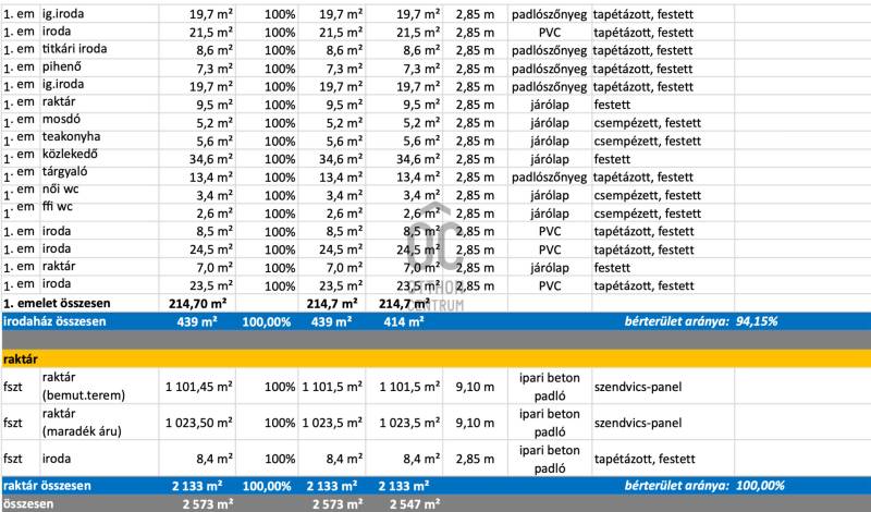 Eladó felújított ipari csarnok és irodakomplexum Budapest III. kerületében!Kiváló elhelyezkedésű, összesen 2.133,35 m² alapterületű ipari csarnok eladó, hozzá tartozó 439,44 m²-es, kétszintes, modern irodai egységgel. Az ingatlan logisztikai központnak, nagykereskedésnek, raktárnak, összeszerelő üzemnek vagy gyártási tevékenységre is kiválóan alkalmas.Főbb paraméterek:Telekterület: Kamionforgalomra és körbejárhatóságra alkalmas, ki- és behajtás biztosítottParkolás: Külső parkolóhelyek minimum 20–25 gépjármű részéreCsarnok I: 1.101,45 m²Csarnok II: 1.023,50 m², belmagasság: 9,10 mIrodák összesen: 439,44 m²Földszint: 224,74 m²Emelet: 214,7 m²Tartalmaz: több tárgyalót, öltözőket, mosdókat, zuhanyzókat, konyhákatMűszaki jellemzők:Vasbeton födém és szerkezet acél vázzalLapostető bitumenes lemezzel szigetelveHomlokzat: hőszigetelt szendvicspanelTető: hőszigetelt, elektromosan nyitható szellőzőablakok3 db ipari kapuTeljesen körbejárható csarnok kamionnal isExtra előnyök:Az ingatlan 2022-ben teljes felújításon esett átKiváló műszaki és esztétikai állapotA tetőn található napelemrendszer biztosítja az áramellátástIdeális választás nagykereskedelmi, logisztikai, gyártási vagy raktározási célokra3–4 hónapon belül költözhetőÁr: 4.000.000 €Ne hagyja ki ezt a kivételes lehetőséget, ha modern, korszerű, azonnal használatba vehető ipari ingatlant keres Budapest frekventált, mégis könnyen megközelíthető részén!További információért vagy megtekintésért hívjon:???? +36 70 639 1972