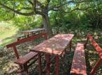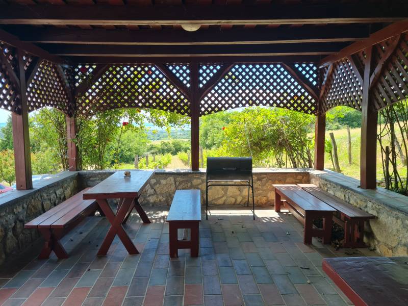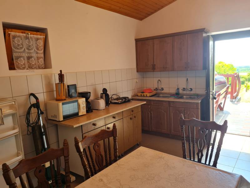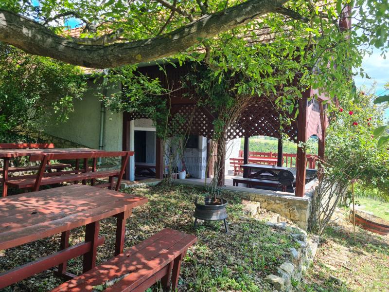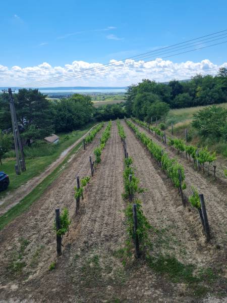 A Balaton-felvidék legnagyobb összefüggő szőlőterületén, a Nivegy-völgyben vált eladóvá ez a teljeskörűen felújított, nyaraló- és vendégházként funkcionáló épület a hozzá tartozó karbantartott és folyamatosan művelt szőlős területtel.Az ingatlan Balatoncsicsó zártkerti részén fekszik, a terület 3785 m2-t tesz ki, mint szőlő, gyümölcsös és gazdasági épület.Elhelyezkedését tekintve nyugodt, csendes, átmenő forgalomtól mentes részen található, így a zavartalan pihenés garantált. A terület télen-nyáron autóval könnyedén megközelíthető.Az kő-tégla épület hasznos alapterülete 110 m2, ezt egy jelenleg borospinceként funkcionáló 60 m2-es helyiség egészíti ki.A házba a vezetékes víz, áram és csatorna bekötésre került.Az épületet a földszinten egy teraszrész, konyha-étkező, nappali és a nappaliból is megközelíthető borospince alkotja, a tetőtérben 2 hálószoba, egy közlekedő és egy fürdőszoba található.Az ingatlanban (külső megközelítési lehetőséggel) még egy vendégmosdó kialakításra került, valamint egy borozó-vendégfogadó rész is. Ezt egészíti ki egy garázs, valamint egy tárolóhelyiség.Az épület felújított, jó állapotú, teljes berendezéssel együtt egyből használatba vehető!A területre Olaszrizling és Juhfark szőlő került betelepítésre.Amennyiben kérdése merülne fel az ingatlannal kapcsolatban, vagy szeretné azt megtekinteni, kérem keressen megadott elérhetőségeim egyikén!