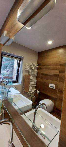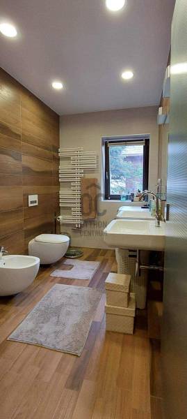 Ez a kivételes, 441 nm-es használt családi ház Nagykovácsiban, Pest vármegyében, a legnagyobb kényelmet és eleganciát kínálja egy exkluzív otthonra vágyó család számára. Az ingatlan egyedülálló tervezésének köszönhetően a tágas nappali és a világos, nagy belmagasságú szobák mind a modern életstílus, mind a családi együttlétek tökéletes színterévé válnak illetve szinten található még egy számos lehetőséggel bíró, liftes helyiség ami lehet akár garázs vagy hobby szoba is . A házban megtalálható 8 szoba és 3 fürdőszoba nemcsak a családtagok, hanem a vendégek kényelmét is szolgálja, így ideális választás lehet befektetési céllal is. A prémium kivitelezésű ingatlan számos modern kényelmi funkcióval rendelkezik, mint például beépített bútorok és szekrények, LED hangulatvilágítás, komplett grillező és kemence a teraszon stb. A házhoz tartozó három garázs férőhely biztosítja a járművek kényelmes tárolását, míg a rendezett 1504nm-es kert és az automata öntözőrendszer gondoskodik arról, hogy a zöld terület mindig ápolt és szép legyen. A kertben található medence és szauna pedig a pihenés és a kikapcsolódás tökéletes helyszínét nyújtja. Az ingatlan csendes, felkapott környéken helyezkedik el, amely nemcsak a nyugalom szigete, hanem a biztonságos életvitel szempontjából is ideális választás. A környék kiváló közlekedési lehetőségekkel rendelkezik, így az autóval közlekedők számára könnyen elérhetőek a főbb útvonalak, míg a tömegközlekedés is jól kiépített, lehetővé téve a gyors és kényelmes bejutást a fővárosba. A közelben található iskolák, boltok és egyéb szolgáltatások pedig tovább növelik az ingatlan vonzerejét. Ez a modern, kandallós, világos és tágas családi ház nemcsak egy otthon, hanem egy életstílus megtestesítője. Az ingatlan állapota kiváló, fűtése gáz (cirko) rendszerrel, hűtése klímával megoldott. A biztonsági ajtó és a videókaputelefon, valamint a riasztórendszer garantálja a lakók biztonságát és nyugalmát. A jelenleg divatos de elcsépelt stílustól eltérő, egyedi megjelenést és valóban élhető, kimondottan harmonikus otthont keresőket azonnal elcsábítja a telekről és magából a házból élvezhető meghitt nyugalom, intimitás és elképesztő panoráma, a mögöttünk lévő erdő közelsége pedig azonnal lenyűgözi.Alapvető műszaki tartalom: :-konyha,beépített Siemens gépekkel-beépített szekrények-központi porszívó-WOLF fűtési rendszer melegvíz kollektorokkal, fa tüzelésű kazán a rendszeren belül–kandalló-5 tonnás auto emelő lift-SLV márkájú LED-es lámpatestek az egész házban-elektromosan mozgatható tetőtéri ablakok és azokon szintén elektromos mozgatású alumínium redőnyök-táv felügyeleti riasztó és kamera rendszer-konditerem, infra szauna Ha Ön is szeretne részese lenni ennek az egyedi lehetőségnek, ne habozzon feltenni kérdéseit, hiszen bármilyen információval szívesen állok rendelkezésére!