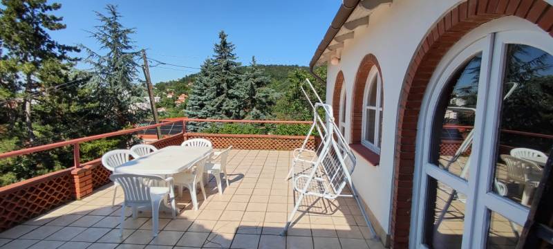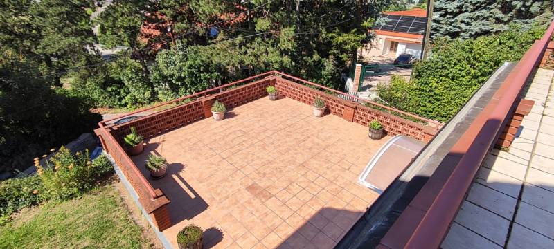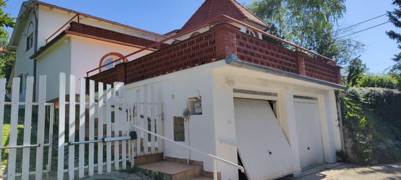 A Tettyén, Pécs kedvelt részén, a Zerge utca tetején eladó egy 5 szobás, 2 hatalmas teraszos, klímás, duplagarázsos családi ház. Az ingatlan kellemes, jó levegőjű környezetben található, akár két család számára is barátságos otthon lehet.....Helyiségek:dupla garázs, 5 szoba, 2 fürdőszoba, 1 konyha, 2 tároló, gépészeti helyiség, 2 nagy terasz, 25 m2-es borospinceAz ingatlan téglaépítésű, fa nyílászárókkal. A fűtést gázkazán végzi, a melegvizet 2 villanybojler készíti.Az emeleti szobák parkettásak a többi helyiség kerámia burkolatú.A duplagarázs kapui távirányításúak, a borospince remek klimájú.A tulajdonviszonyok rendezettek, tehermentes. Az alaprajzokon kisebb módosítások történtek.