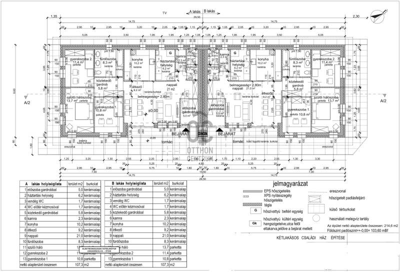 Tahitótfaluban, kiváló megközelítéssel – Új építésű, modern ikerház eladóEladó Tahitótfalu csendes, sík részén egy vadonatúj, letisztult vonalvezetésű, minimál stílusú ikerház, amely eleganciájával és tágas, világos tereivel azonnal rabul ejt.Az ingatlan nappali + 3 hálószobás elrendezésű, így ideális választás családok számára. A nagy méretű nappali a ház szíve, ahonnan közvetlen kijárat nyílik a hangulatos, teraszra, és onnan a privát kertbe – tökéletes helyszín baráti összejövetelekhez, nyári sütögetéshez vagy nyugodt pihenéshez.A ház kivitelezését egy tapasztalt, megbízható építő cég végzi, amely számos referenciával rendelkezik a környéken!Az ingatlan elosztása, az alábbi helységek és méretek szerint : nappali: 21 nmhálók: 13,7;11,4 ;10,8 nmkonyha:10,2 nmétkező:9,2 nmkamra:2,3 nmfürdőszoba:8,3 nmWC: 1,7 nmháztartási helyiség: 6,2 nmközlekedő + gardrób:5,8 nmelőszoba + gardrób: 5 nmMúszaki tartalom és egyéb jellemzők:A ház tégla építésű, 30 N+F Porotherm kerámia falazó elemből készül, 20 cm Grafit Reflex EPS homlokzati hőszigetelővel, amit CT-175 lélegző vékonyvakolattal borítanak. A nyílászárók, háromrétegű üvegezésűek, bukó-nyíló funkcióval.Az otthon fűtés, melegvíz ellátását hőszivattyú biztosítja, továbbá előkészítésre kerül a riasztórendszer és minden szobában a klíma kiállás is. Az udvaron burkolt gépkocsi beálló és terasz is található. Átadás 2026 áprilisában várható, a burkolatok, beltéri ajtók és szaniterek pedig jelenleg még szabadon választhatók, így teljes mértékben a saját ízlésedre formálhatod az otthonodat.A korszerű építési megoldások és a modern fűtési rendszer alacsony fenntartási költségeket biztosítanak. Az ingatlan jó megközelíthetősége miatt gyorsan elérhetők a főbb közlekedési útvonalak, miközben a környék nyugodt, biztonságos és családias hangulatú.Hívjon most és nézzük meg együtt ezt a nagyszerű lehetőséget!