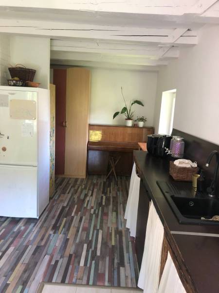 Erdőszéli, de mégis közel a központhoz!Lakóházzá bővített hétvégi ház az erdő szomszédságában.Egy hangulatos, 3 szobássá alakítható 56 nm es házat ajánlok figyelmébe! A földszint 36 nm, tégla szerkezetű alatta pince, az emelet, fa szerkezet korcolt lemez borítással.Mindhárom szint extra szigeteléssel ellátott, a műanyag nyílászárók 3 rétegű üvegezéssel kerültek beszerelésre.Az alsó szint beosztása:előtérfürdő+wcnappali-konyha-étkezőgardróba bejárat előtt árnyas teraszAz emelet jelenleg egy légtér, de könnyedén kialakítható 2 db szoba.A fűtés hőszivattyú, ami rendkívül energiahatékony, a rezsi minimális.A földszinten padlófűtés, az emeleten felületfűtés van.villany bevezetve, 3X25 A, a pincében ipari csatlakozó.A vízellátás hidrofóros kúttal megoldott.Az udvaron kis melléképület, magaságyások, gyümölcsfák, gyógynövények, a szomszéd ingatlanok szépen rendezettek.Az ingatlan művelés alól kivett, ház és udvar besorolású, így lakáscélú hitel nem vehető fel rá!Alkalmas állandó lakhatásra, idegenforgalmi célra, vagy hétvégi háznak.Az erdő közelsége garantálja a dús levegőt és a változatos madárcsicsergést!Jöjjön el, szeressen bele, érezzen rá erre a hangulatra!Keressen bizalommal! :)Lengyel Katalin