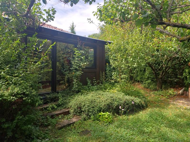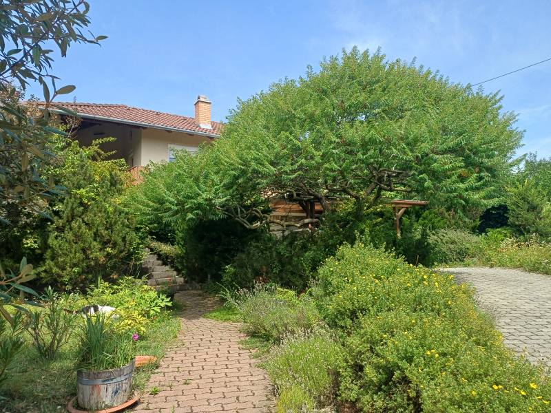 Csodálatos kert, egyedi stílus a Pilis szívében!Eladó Piliscsaba Garanligeti részén, csendes helyen egy 1119 nm-es, csodálatos kerttel rendelkező, két szintes családi ház.A ház 2008-ban épült, 38-as téglából, kívülről plusz 15 cm szigeteléssel.Belső kialakítása egyedi:-felső szinten (95 nm): előtér, 3 szoba, fürdőszoba, WC, gardrób rész, egy kis szintkülönbséggel tágas nappali+konyha+étkező teraszkapcsolattal és egy télikerttel, lépcsőlejáró az alsó szintre-szuterénszinten: fűthető garázs, szauna zuhanyzóval, mosdóval, fedett kocsibeálló.A fűtés gázkazánnal működik, hidegburkolatos részeken padlófűtéssel.Az utcafronti- és garázskapu elektromos.Az egész telek telis-tele van gyönyörű növényekkel (gyertyán, galagonya, ringló, tiszafa, hársfa, ginkgo, füge, cseresznye-, meggyfa, vérszilva, színes virágok, stb. :)). Még gyógynövényes rész is helyett kapott a kertben. Hangulatos kis kiülős részek vannak az érett növényzet között. :)Ez a ház és kert egy igazi csoda, ha szereti a különleges hangulatot! :)Budapest kb. 40 perc vonattal.A közelben számos kirándulási lehetőség.Ha további kérdése lenne vagy megtekintené az ingatlant, kérem hívjon!Lengyel Katalin06 20 251 5791