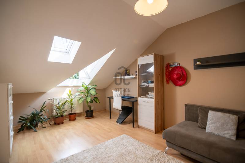 Budaörs-Kertváros egyik legszebb, felújított, forgalomcsökkentett utcájában kínálunk megvételre egy belső négyszintes, panorámás, igényesen megépített sorházat, mely több generáció igényes mégis diszkrét együttélésére is alkalmas.Az ingatlan különlegessége, hogy az utcafront felől nem hivalkodó, tehát nagy mérete egyáltalán nem látható. Dombra épült, így lakóterei a panoráma felé tájoltak. A luxus érzetet fokozza, hogy a nappaliból és a konyhából is panorámás az ingatlan, még a téli időszakban is kellemesen benapozott.FEKVÉSE: K-D-Ny, tehát a nap az ablakok előtt jár egész nap.TERÜLETE:A ház főbb paraméterei között szerepel a nettó 300 nm belső terek: mely 4 lakószintet, 2 nappali + 5 db szobát foglal magába, 2 db konyhát, 2 db kádas-zuhanyzós fördőszobát, 3db wc-t, 2 db teraszt mely összesen: 51m2, és 2 db. panorámás erkélyt: 26m2Mindez kiegészül egy a 369m2 parkosított kertes telekkel.Szintén a ház része egy 18,5m2 fűtött garázs, mely előtt egy kocsibeálló található, a ház előtt két gépjármű számára ingyenes parkoló, 50 méterrel távolabb pedig még 2-3 autó számára parkolási lehetőség.A SZOBÁK SZINTENKÉNTI ELOSZTÁSA:1.Bejárati szint: garázs (18,5m2), előszoba, wc, 5-6m belmagassággal tágas, egybefüggő térben, funkcionálisan elkülönülve a nappali, étkező (50m2) és a konyha, kamra (13m2), erkély: 13m2.2.Galéria-tetőtér szint: 2 hálószoba (16nm, 18nm), fürdőszoba (9m2), közlekedő, wc, nappali (22m2).3.Mínusz 1.szint: közlekedő, gardrób, mosókonyha, fürdőszoba (16,5m2), wc, szoba (19,5m2), szoba (19,5m2), erkély (13m2)4.Kertszint (mínusz 2.szint): közlekedő, tároló, szoba (28m2) konyha (16m2), terasz (41m2)TOVÁBBI FELSZERELTSÉG:A ház a kétezres években épült. Az energetikai besorolása a háznak CC- mely megfelelően modern szigetelést illetve alacsony rezsi költséget jelent a tulajdonosának.Fűtése Unical kombi gázkazán (2020.évben felújítás történt kéménybéleléssel)A dupla kémény miatt lehetőség nyílhat akár a fafűtéses kazán használatára is.Az egész ház fel van szerelve egy modern vezetéknélküli riasztórendszer mely (2019-ben lett beszerelve) zónánként kapcsolható, kisállat mellett is használható, mobilról vezérelhető.A ház padlástere beépített, szigetelt a ház teteje zsindelytető. A háztető újra zsindelyezése folyamatban, a klímabeszerelés is megtörténik az értékesítésig.2025. ÉVI FELÚJÍTÁSOK:- Tető-ultravékony hő- és vizszigetelő folyékony kerámia bevonattal (nanotechnológia)- Homlokzatszínezés - Lézervágott Új kerítés- Belső falak festése- Fürdőszoba (csempe, szaniter) felújításaREZSIKÖLTSÉG:- rendkívül alacsony a következő képpen oszlik meg:-gázfogyasztás: (2022-23) – 1.683m3, kb. 17eft/hó-villany: kb. 11-12eft/ hó-víz-csatorna: kb. 12 eft/2hó-hulladékdíj: 5.800ft/ év – negyedéventeA ház előkertje kb. 20m2 (tuják, bokrok, sziklakert).A hátsó kert kb. 200m2, kb.25 éves nagy cseresznyefa, sziklakert, bokrok, virágok, fügefabokor, néhány tuja, ezek felérnek a 3. szintig (nappali), 3-6 méteres zöldfal (vadszőlő)További fontos tulajdonsága, hogy az ingatlan 2 utcára nyílik, mindkét utca remek szomszédokkal, hangulatos ingatlanokkal, felujított útburkolattal, járdával ellátott.Az ÖRÖKPANORÁMA a budaörsi dombokra, templomra, kápolna, keresztre, balra a bevásárlóközpontokra és Budaörs környéki településekre nyílik.KÖRNYÉK:Budapest XI. határától kb. 1km-re található az ingatlan.Óvoda / Iskola: a XI. kerületben és Budaörsön számos óvoda, általános iskola, gimnázium található.Sport -és szabadidős lehetőségek: kamaraerdei Sport11 Sportközpont, uszoda és strand, budaörsi uszoda és strand kb. 10 perc gyalog. Kamaraerdei lovarda, Kamaraerdei Futballpálya, Kutyaiskola, Highland Golf és minőségi kis éttermek.ÜZLETEK:Budaörsi bevásárlóközpont 5-10 perc autóval(Tesco, Auchan, MediaMarkt, Ikea, Decathlon, Intersport, Mömax, XXXLutz, New Garden kertészet, McDonald’s, Burger King, Bellozzo, KFC)Kelenföldi pályaudvar, M4 metro, Etele tér, Etele Plaza: 15-20 perc közösségi közlekedéssel is elérhető.M1/M7 autópálya budaörsi felajtó 5 perc autóval.Komoly érdeklődés esetén a méretpontos alaprajzok illetve az ingatlan Videóját kérésre elküldöm.