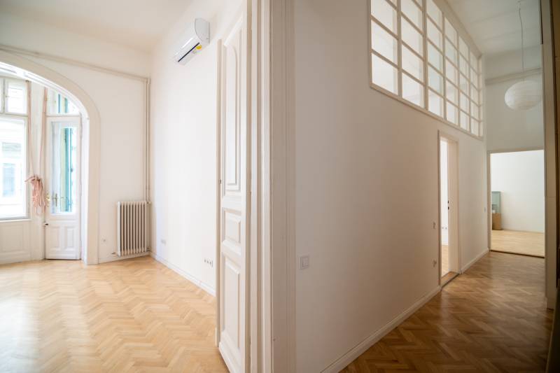 Fedezze fel Budapest szívében, a Belső VI. kerületben található, kiváló állapotú lakásunkat, amely ideális választás középkorúak számára, akik értékelik a modern életstílust és a kényelmet. A Zichy Jenő utcában elhelyezkedő, 140 négyzetméteres ingatlanunk tágas nappali és három szoba révén bőséges teret kínál családoknak vagy akár befektetési célra is. A frissen felújított lakás minimalista kialakítása és egyedi tervezése a beépített bútorok és szekrények, valamint a LED hangulatvilágítás révén tökéletes harmóniát teremt. Az ingatlan hűtése klímával, fűtése pedig gáz (cirko) rendszerrel megoldott, így minden évszakban kellemes hőmérsékletet biztosít. A két fürdőszoba kényelmet és praktikumot nyújt, különösen a nagycsaládosok számára, akik értékelik ezt a kényelmet és az intimitást. A lakás nagy belmagassága és világos, napfényes szobái egyedülálló atmoszférát teremtenek, amelyben igazán otthon érezheti magát. A környék ellátottsága kiváló, a közlekedési csomópont közelsége lehetővé teszi, hogy könnyedén elérje Budapest bármely pontját. A kitűnő közlekedésnek köszönhetően a város tömegközlekedési lehetőségei, mint a metró, busz és villamos, mind csupán néhány perc sétára találhatók. A csendes környék, amely a belváros pezsgésétől mégis csak egy lépésnyire helyezkedik el, ideális választás azok számára, akik a nyugalmat és a városi élet előnyeit egyaránt keresik. Ez a tehermentes ingatlan nem csupán lakóhely, hanem egy lehetőség is, hogy egy felkapott környéken, központi elhelyezkedéssel rendelkező otthonra tegyen szert. Legyen Ön akár családos, akár befektető, ez a lakás minden igénynek megfelel. Kérjük, ne habozzon feltenni kérdéseit, hiszen szakértőink készséggel állnak rendelkezésére, hogy segítsenek Önnek a legjobb döntés meghozatalában. Az ingatlan megtekintése és a részletek átbeszélése érdekében keressen minket bizalommal!
