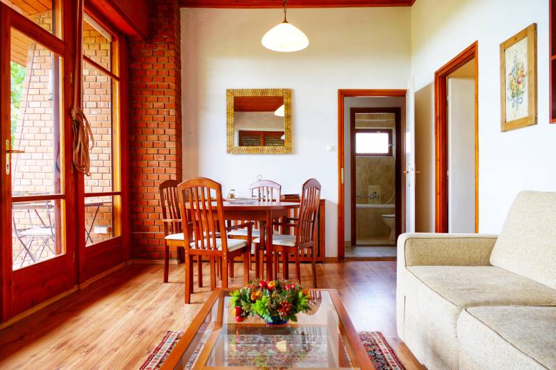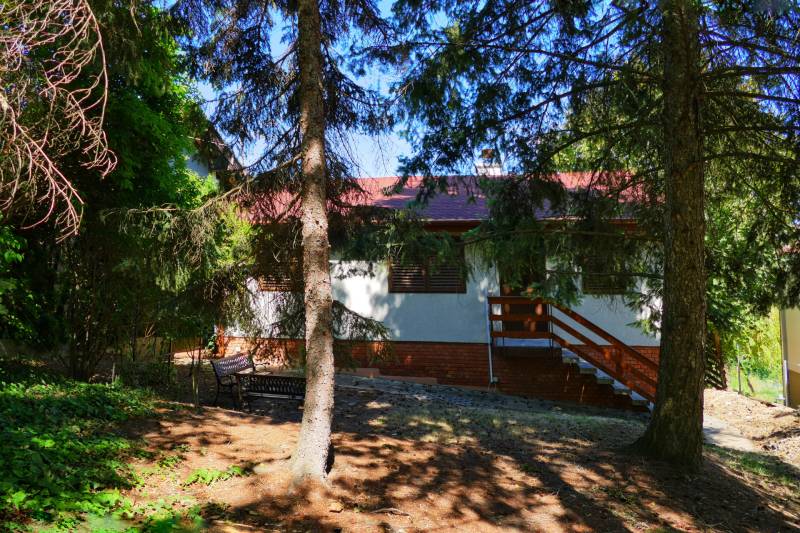 Szentendre, Boldogtanya belterületén, téliesített hétvégi ház eladó!TELEK:- 959 nm- panorámás- csendes környék- aszfalt úton megközelíthető- bekerített minden oldalról- autóbeálló , díszkő burkolatú- rendezett, ápolt kert- előkertben fenyőfák adják az árnyékot a kövezett terasz részre- a telek hátsó oldala enyhén lejtős,- oldalkert részben örökzöldek, gyümölcsfák ( cseresznye, mogyoró és szilva) , cserjék, évelő virágok- kert jelentős része füvesítettHÉTVÉGI HÁZ : - 1970-es években épült- tégla építésű- 2006-ban teljes körű felújítást végeztek a tulajdonosok.- a ház megkímélt, újszerű állapotban van- két különálló részből áll- a lakótér két szoba, nappali, konyha, fürdőszobából áll- 55 nm- belmagassága 280 cm-beépített bútor az előszobában- a nappaliból és az egyik hálószobából csodálatos panorámában lehet részünk.- Nappaliból egy 11,5 nm fedett erkélyre juthatunk ki.-parketta burkolat , fürdőszobában , konyhában, előszobában járólap- gáz cirkó fűtés, radiátorral- télen temperálva van a hőmérséklet- nyílászárók fából- nagy ablakokon a nappaliban redőny, a kisebb ablakokon zsalugáter- kert kapcsolatos szint 35 nm két részből áll, az egyik rész 16 nm, ebből kb 5 nm zuhany kabinos fürdőszoba, valamint egy sport szoba ( 11 nm) oldalfal hosszúságban beépített szekrényekkel a másik rész ( 20nm) is két helyiségből áll, egy konyha- étkezővel, és egy nagy tároló, beépített bútorokkal, szekrényekkel- terasz és kert kapcsolat - a ház teljes bútorzattal eladó ( néhány személyes tárgy kivételével) - Keleti fekvésű