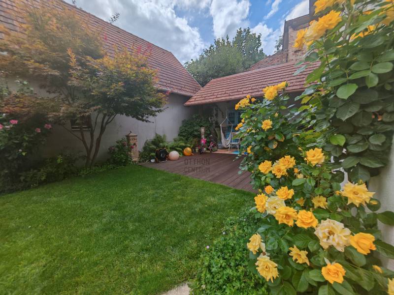 Tágas otthon Szenttamáson – fiataloknak, családoknak, befektetőknekEz az ingatlan különösen fiatal felnőttek és családok számára lehet vonzó választás, akik modern, kényelmes otthont keresnek Esztergom kedvelt Szenttamás városrészében.A 140 m²-es, kiváló állapotú ház tágas, világos tereivel minden igényt kielégít. Az ingatlan 4 szobás, 2 fürdőszobával rendelkezik, így akár nagyobb család számára is ideális.Központi eleme az amerikai konyhás nappali, ahol egy cserépkályha is gondoskodik a meghitt légkörről – tökéletes helyszín a baráti és családi összejövetelekhez.A 234 m²-es telek rendezett kerttel büszkélkedhet, ahol automata öntözőrendszer segíti a zöld környezet fenntartását. A kerti tároló praktikus megoldás a szerszámok elhelyezésére.A prémium kivitelezés, a biztonsági ajtó és a korszerű kialakítás garantálja a nyugalmat és biztonságot – így Ön valóban otthon érezheti magát.A környék infrastruktúrája kiváló: boltok, éttermek, szórakozási lehetőségek, valamint a városközpont gyorsan elérhető autóval és tömegközlekedéssel is. A Szenttamás nyugodt, ugyanakkor pezsgő környezete ideális életvitelt biztosít.Az ingatlan tehermentes, kisállatbarát, és befektetésnek is remek lehetőség – a fiatalok körében népszerű elhelyezkedés és a folyamatos kereslet jó megtérülést kínál.Ha Ön egy egyedi tervezésű, exkluzív otthont keres Esztergom szívében, amely minden modern kényelmet biztosít, ne habozzon!Lehetőséget biztosítunk a személyes megtekintésre, és szívesen válaszolunk minden kérdésre. Ez az ingatlan gyorsan gazdára találhat, így ne habozzon, és keressen minket!Vásárlását pénzügyi és jogi háttérrel biztosítjuk!Várja Új Otthona!Hívjon Bizalommal!Ez az ingatlan a \"Felező csomag\" megbízási portfólióhoz tartozik. Részletek az Otthon Centrum weboldalán.