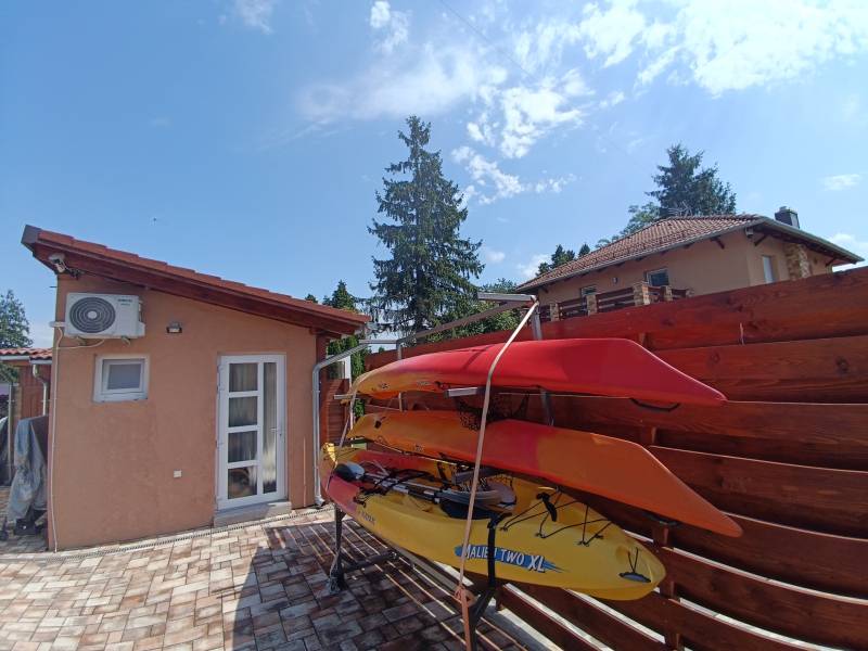 KIEMELT AJÁNLAT A BALATON DÉLI PARTJÁN, BALATONMÁRIAFÜRDŐ SZÍVÉBEN, A STRANDTÓL ÉS A HAJÓÁLLOMÁSTÓL PÁR PERCRE. EGY IGAZÁN KÜLÖNLEGES, PRÉMIUM MINŐSÉGŰ INGATLAN, AMELY NEM CSUPÁN LAKÓHELY, HANEM EGY ÉLETSTÍLUS. Vízközeli nyaralóra, állandó balatoni otthonra vágyók illetve befektetők figyelmébe ajánljuk! Ide csak be kell költöznie!A kiváló állapotban lévő, 3 lakrészből álló mediterrán hangulatú épületegyüttes 648 nm szépen gondozott telken helyezkedik el, modern technikai kivitelezésben, okos otthon funkcióval épült. 8 szobával, valamint 3 fürdőszobával, 3 gépesített konyhával, kültéri medencével, nagy teraszokkal, wellness részleggel várja új tulajdonosát. Az ingatlan ideális választás lehet családok számára, akik a kényelmes és tágas életteret keresik. Befektetési célra is kitűnő lehetőséget kínál, hiszen a Balaton közelsége és a környék turisztikai vonzereje garantálja a jövedelmezőséget. A Nyugati-övcsatornára való panorámás kilátás biztosítja, hogy a természet szépségét mindennap élvezheti illetve közvetlen vizi úton is kijuthat a Balatonra. AZ INGATLAN FŐBB JELLEMZŐI:- kiváló lokáció- közvetlenül a Nyugati-övcsatorna partján- a szabad strand csupán 400 méterre - saroktelek- ingatlan nyilvántartás szerint:LAKÓHÁZ, UDVAR, GAZDASÁGI ÉPÜLET - 3 lakrészből álló, prémium minőségben épült tégla épület- okos otthon funkció- 202 nm hasznos alapterület ( bruttó 269 nm)- 40 méter széles utcafront- teljesen körbe kerített- az esztétikus kőkerítés biztosítja a belső kert intimitását- 2020-ban épült 2 szintes apartmanház ( 50nm és 40nm hasznos területtel)- 2023-ban elkészült földszintes lakóház ( 82nm)- önálló wellness részleg (31,5nm)- gáz cirkó fűtés, padlófűtéssel mind a 3 lakásban- kiegészítő fűtés 3 kandallóval biztosított- 3 gépesített konyha (minőségi elektromos berendezések, mosógépek, szárítógépek, igényes bútorzat, vízlágyító)- az épület hűtéséről 7 klíma gondoskodik - motoros alumínium redőnyök, szúnyoghálók, háromszoros üvegezésű ablakok- grafitos hőszigetelés- kívül-belül terméskő és tégla burkolatok- kamera- és riasztórendszer- 3x32 Amper, ipari áram TÁGAS TEREK, EGYEDI BELSŐ ELRENDEZÉS, LETISZTULT FORMÁK:I. LAKÓHÁZ: kertkapcsolatos nappali/étkező, konyha, kamra, 2 külön nyíló szoba, mini wellness rész, fürdőszoba/WCII. földszinti apartman: konyha/nappali/étkező, fedett terasz, hálószoba, kamra, gyermek kuckó (gardrób), fürdőszoba/WC III. emeleti apartman: lépcsőház, gépészeti helyiség, konyha/nappali/étkező, terasz, hálószoba, fürdőszoba/WCIV. wellness: party helyiség (épített kemencével biliárddal, csocsó asztallal, darts, pingpongasztal), jakuzzi rész, vendég WC, szaunaSZÉPEN GONDOZOTT, PARKOSÍTOTT KERT ÖRÖKZÖLDEKKEL:- 648 nm teleknagyság- 8 m széles elektromos tolókapu- 2 külön gyalogos bejárat- fűtött, ellenáramoltatós medence- finn szauna- klimatizált wellness részleg: jakuzzi, vendég WC- kertkapcsolatos party helyiség - kerti bútorok, nyugágyak, napozóágyak - 2 kerti zuhany- 4 autó részére térkövezett zárt udvari beálló (70nm)- automatizált kerti világítás- vakondháló, locsolórendszer, fűnyírórobot- épített kemence- a kert öntözését fúrt kút biztosítja - 2 kerékpártároló kerékpárokkal- sporteszközök, 3 kajak, tároló állvánnyal, biztonsági felszereléssel- kerti halpucoló, szalonnasütőPLUSZ EGY EGYEDI LEHETŐSÉG, HORGÁSZAT KEDVELŐINEK: a ház előtt lévő stég és csónakhely és horgászcsónak (elektromos motorral, fürdőlétrával, halradarral, takaróponyvával)Az ingatlan per- és tehermentes, rövid idő alatt birtokba vehető.INGÓSÁGOK: A hirdetésben megadott ár az ingatlanra vonatkozik, a felsorolt ingóságok, a teljes bútorzat, edények, műszaki berendezések, kerti bútorok, széf, étkészletek, ágyneműk, törölközők, több évre való száraz fa, csónak EXTRA FELÁRA 20 MILLIÓ FORINT. Az ingatlan kizárólag a tartozékokkal együttesen eladó!A környék csendes és biztonságos, ideális választás a pihenni vágyók számára, akik a Balaton közelségét keresik. A közlekedési lehetőségek is kedvezőek: könnyen megközelíthető autóval, M7 autópálya, 7-es főút illetve a tömegközlekedési eszközök is rendelkezésre állnak ( vasútállomás és buszmegálló pár perc gyalog) A közelben található posta, boltok, éttermek, fagyizók és egyéb szolgáltatások biztosítják, hogy minden szükséges kényelem meglegyen. A vízpart közelsége, a szabadidős tevékenységek, mint a kerékpározás, túrázás és a vízi sportok, mind hozzájárulnak ahhoz, hogy ez a hely valóban különleges legyen. A befektetési lehetőségek mellett a családi otthonként való használat is vonzó, hiszen a Balaton körüli életstílus és közösség valóban egyedülálló. Amennyiben felkeltette érdeklődését ez a kivételes ingatlan, várjuk jelentkezését, jöjjön el és nézze meg, hogy megtalálja az álmai otthonát vagy a tökéletes befektetést!Az adatok és az alaprajzok tájékoztató jellegűek.