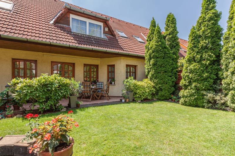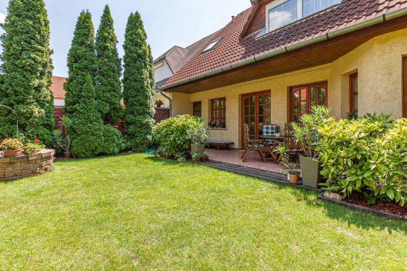 Napelemes, Madárcsicsergős Otthon a Madách-ban!Dunakeszi az északi agglomeráció központja, egy nyugodt, Duna-menti kertváros mely megújuló parti sétányával, kiváló iskoláival, folyamatos infrastrukturális és intézményi fejlesztéseivel az egyik legdinamikusabban fejlődő és szépülő hely a Dunakanyar kapujában.Itt, a város méltán kedvelt, kiválóan lokált területén, a Madách Lakópark tüneményes hangulatú házainak szomszédságában került eladósorba egy szép állapotú sorházi lakás.Csendes zsákutcában, barátságos lakóközösségű gondos porták mellett kapott helyet.A ház 97-es építésű, a kornak megfelelő -és akkor sokkal szigorúbban vett- építési szabványoknak megfelelően épült masszív alapozással, 30as Porotherm téglatestekből, Sofatherm hőszigetelő üvegezéssel ellátott romantikus osztott üveges nyílászárókkal, tetőtérben új ablakokkal, lapradiátoros fűtéssel melyet még GARANCIÁLIS, frissen beépített kondenzációs cirkókazán üzemeltet, pót-kéménnyel, ami lehetőséget biztosít kandalló vagy mázaskerámia cserépkályha telepítésére a nappaliba.Gondosan szigetelt födém és tetősík, - cserépfedéssel.Földszinten tágas, jól bútorozható így tárolóként is funkcionáló GARÁZS, frissen burkolt letisztult előszoba, étkező/hall, nagy méretű térben félig szeparált konyha kamrakapcsolattal, déli tájolású nappali, fürdőszoba, szeparált illemhely kaptak helyet. Az kertre nyíló terasz fedett, a kertrész bűbájos, hatalmas thujákkal, díszcserjékkel, konyhakerttel szolgálja a zavartalan pihenést. Aktív, modern nagycsaládnak ideális, pont akkora zöldterülettel aminek gondozása nem teher, de a hétvégi garden partyhoz elengedhetetlen!Emeleti szinten 3 hálószoba, nagy fürdőszoba, WC kézmosóval és közösségi tér található, amely tökéletes játszó, olvasó vagy tanulósaroknak, home office kialakítására, de könnyűszerrel nyerhetünk belőle még egy hálószobát. Gyönyörű tömörfa lépcsősor, gazdagon lakozott parketta és lambéria csempésznek otthonos, meleg hangulatot a helyiségekbe.Az emeletről még egy szint elérhető, mellyel abszolút tetőtérben 2 helyiséges lakrészt nyertek a padlástér beépítésével. Kiváló lehetőség kamasz gyermek elhelyezésére, xbox-szobának, movie room-nak, vagy ide is telepíthető kellemes környezetbe a dolgozószoba.A 3 éve telepített NAPELEMRENDSZER 4.55kW teljesítményű, a teljes ház áramellátását fedezi, és meg elektromos autó töltését is elbírná. Együttműködik a 3.5kW-os klímaegységekkel így a hűtést nyáron könnyedén megoldja, a teli időszakban pedig rásegít a hőszabályozásra.A nagy terek és kényelmes elrendezés lehetővé teszi kisebb átalakításokkal 2 generáció együttélésének kiszolgálására!Közelben: MINDEN, ami a hétköznapokhoz szükséges, kis és nagyobb élelmiszerbolt, zöldséges, cukrászda, több általános iskola, óvodák, uszoda, buszmegálló, vasútállomás (Nyugati PU 30perc)Jöjjön el, nézze meg, ha maximálisan ellátott területen keres Családjának bűbájos Otthont, ahol a kertben teljesen megszűnik a külvilág zaja, mégis karnyújtásnyira a Főváros!
