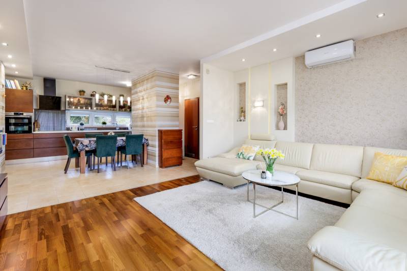 Sasad egyik legszebb, csendes utcájában kínálok megvételre egy különleges adottságokkal rendelkező, napfényes, tágas lakást. A lakás intim, zöld növényekkel körbevett környezetben helyezkedik el, ahol a nyugalom és a biztonság garantált. A kíváncsi tekintetektől elzárt, bájos terasz tökéletes helyszíne lehet reggeli kávéknak vagy esti pihenéseknek.Főbb jellemzők 90 m² lakótér + 14 m² terasz Dél-nyugati fekvés – egész nap világos, napfényes 1. emeleti lakás egy újszerű, liftes, mindössze 6 lakásos társasházban Intim, növényekkel övezett, zavartalan környezetCsaládbarát, rendezett, zöldövezeti utcaElrendezésTágas, világos nappaliÉtkező, gépesített konyha, külön kamrával 3 külön nyíló hálószoba 1 fürdőszoba + 1 külön WC Beépített tárolóbútorokMinden helyiség ablakos, redőnnyel és szúnyoghálóvalKomfort és műszaki felszereltség3 darab hűtő-fűtő klíma Motoros, szélérzékelős napellenző a teraszon Gázkazános fűtés és melegvízPadlófűtés a hidegburkolatos helyiségekben, radiátoros fűtés a szobákbanA teremgarázshoz fűtött lehajtó biztosítja a kényelmes és biztonságos parkolást télen isTartozékok (az ár része): Nagyméretű teremgarázs hely Külön, zárható tárolóA társasház és kertKis létszámú, barátságos lakóközösségGondozott, parkosított kert automata öntözőrendszerrelSaját játszótér a gyerekeknekA kertet hivatásos kertész ápoljaElhelyezkedés, infrastruktúraKiváló közlekedés: M1/M7, MOM Park, Allee, Etele Pláza néhány perc alatt elérhetőA közelben: iskola, óvoda, boltok, parkok, játszótér, orvosi rendelőGarázs és tároló 25 000 000Teljes vételár garázzsal tárolóval 214 000 000 Ft