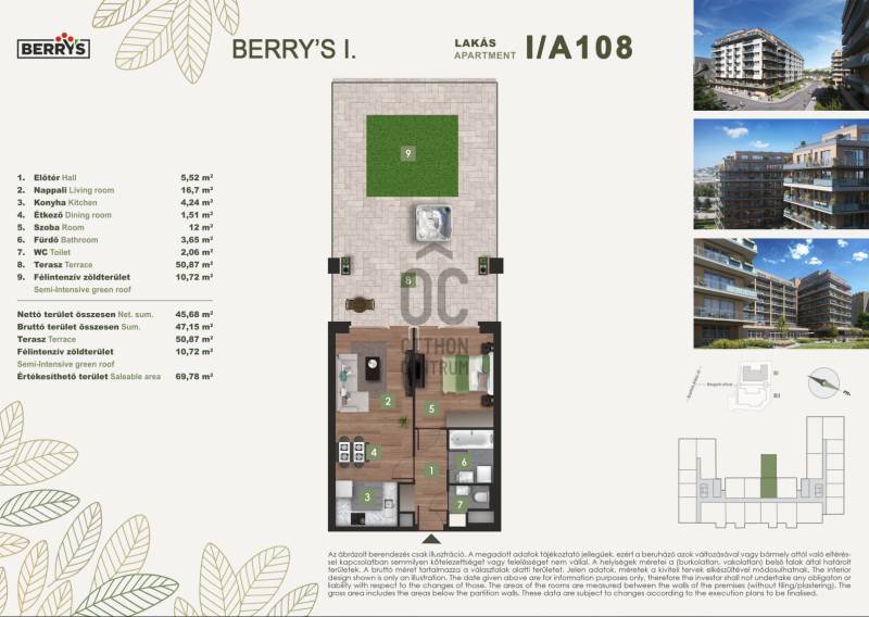 Projekt bemutatásaA XI. kerületi Bartók Béla úthoz közel épülő lakópark egy csendes, nyugodt környezetet kínál a város forgatagához közel. Az újbudai városrészben kialakított új lakónegyed kiváló közlekedési kapcsolatokkal rendelkezik. A zsákutcából nyíló elhelyezkedés biztosítja a forgalommentes, zavartalan lakókörnyezeti életet.A lakópark elhelyezkedése ideális azok számára, akik gyorsan és kényelmesen szeretnék elérni a város bármely pontját. A 4-es metró közelsége, az 1-2 perc sétatávolságra elérhető villamosok és a környéken közlekedő nappali és éjszakai autóbuszjáratok kiváló közlekedési lehetőséget biztosítanak. Az M1-es és M7-es autópályák közelsége, vagy a Kelenföld vasútállomás megkönnyíti az ország minden részébe, kiemelten a Balatonhoz és a Velencei tóhoz tervezett utazásokat.A legmodernebb mennyezeti hűtő- fűtő rendszernek köszönhetően alacsony fenntartási költségek várnak. A zöldtetők és az épület körüli zöldterületek nemcsak természetes hőszigetelést adnak, de a közösségi életet is támogatják.A gyönyörű kilátás nyugalma a városi nyüzsgés harmóniájával. A Berry’s minden lakásához tartozik loggia, erkély, vagy terasz!Várható műszaki átadás: 2027 vége