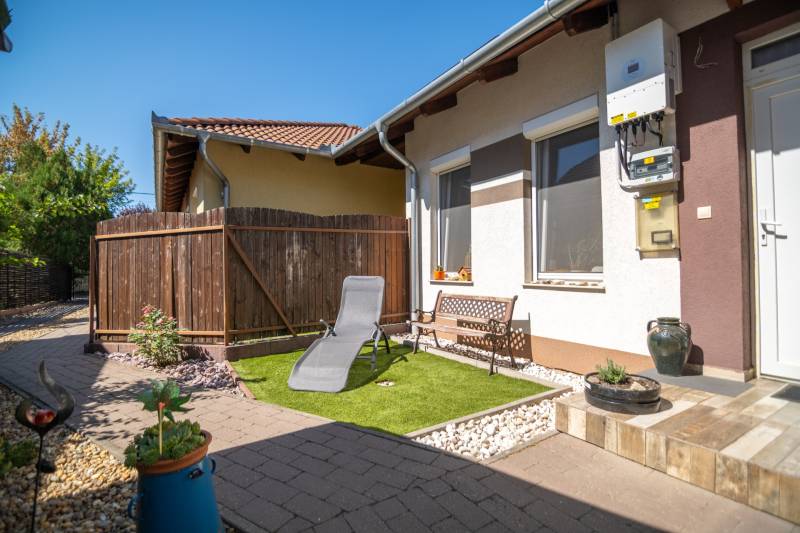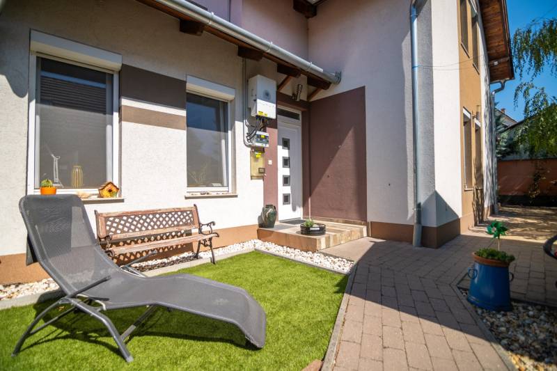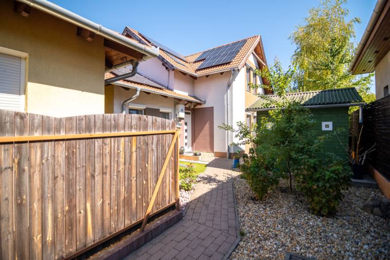 Megvételre kínálunk egy jó elosztású, jó állapotú kertes ikerház hátsó részét Újpéteritelepen!Az ingatlanról:✔️ 113 m2-es, nappali+ 4 hálószobás (Tulajdonilapon 96 m2-es, mert a garázst végül szobává alakították de így összesen 113 m2)✔️ földszinten: nappali-étkező-konyha, előszoba, fürdőszoba, 1 szoba.✔️ fedett terasz 12 m2✔️ Kert: 328 m2✔️ emeleten: 3 szoba, fürdőszoba, közlekedő.✔️ minden szoba külön nyíló✔️ ablakok műanyagok redőnnyel és szúnyoghálóval.✔️ nappali keleti tájolású✔️ fűtése: kombi cirkóval működik, mindenhol radiátorok illetve a földszinten a szobán kívűl mindenhol padlófűtésA ház 2016-ban épült 30 cm vastag téglából.A betoncserép tetőn elhelyezett napelemek segítik az áramszámla alacsonyan tartását.10 cm szigetelés.Az ingatlanhoz tartozik egy kerti tároló is.Jogilag társasház. Parkolni telken belül 3 autóval lehetséges illetve a ház előtt.Közelben minden megtalálható ami fontos a mindennapokhoz!✔️ CSOK+ és sima normál banki hitelre is alkalmas ingatlan!Ha felkeltette érdeklődésedet keress nyugodtan a hét bármelyik napján!