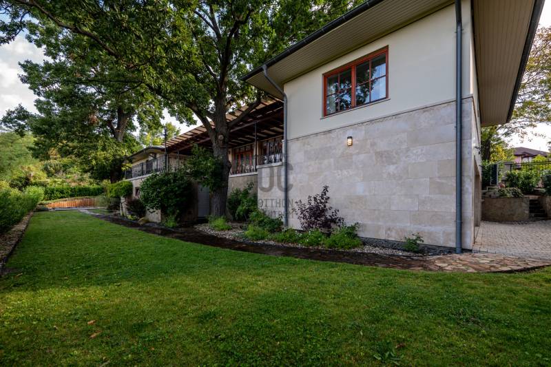 Adyliget legexkluzívabb részén, közvetlenül természetvédelmi terület szomszédságában kínáljuk megvételre ezt a lenyűgöző, olasz stílusú luxus családi házat, amely a nyugalom és kényelem tökéletes kombinációját nyújtja. Ez az ingatlan valódi ritkaság a piacon, amely kivételes lehetőséget kínál azok számára, akik kompromisszumok nélkül szeretnék élvezni a luxust és a természet közelségét.Az 1798 m²-es telken fekvő, 480 m² alapterületű, kétszintes villa 2002-ben épült, majd 2020-2023 közt teljeskörű felújításon esett át.A fő lakótér 240m2, itt található az elegáns étkező és az üveg/alumínium térelválasztóval szeparált, modern, felszerelt konyha nagyteljesítményű elszívóval, kőpulttal, dupla hűtővel, borhűtővel, indukciós tűzhellyel és konyhaszigettel.Ezen a szinten található továbbá a nappali kandallóval, négy hálószoba, két fürdőszoba, egy gardrób és több mellékhelyiség. Egy hosszú, elegáns folyosó választja el a gyermek és szülői szárnyakat. Az alsó szinten egy külön bejáratú, 60 m²-es vendéglakás, edzőterem, szauna és egy moziszoba Dolby Surround előkészítéssel áll rendelkezésre, valamint egy 3 állásos teremgarázs és további udvari parkolóhelyek biztosítják a kényelmet.A kertészmérnök által tervezett gyönyörű kertben medence és napozóterasz biztosítja a kikapcsolódási lehetőséget. A medence vízforgatóval és sóbontóval van felszerelve, amely csökkenti a vegyi anyagok használatát, környezetbarát és minimális gondozást igényel. A tágas terasz pedig páratlan panorámát kínál.A ház korszerű hibrid fűtési rendszerrel, hőszivattyúval és nagy teljesítményű klímaberendezéssel, valamint előkészített napelemrendszerrel rendelkezik, amelyek energiahatékonyságot és környezetbarát megoldásokat kínálnak.Az ingatlan elhelyezkedése ideális: csendes, átmenő forgalomtól mentes zsákutcában található, a közelben pedig Budapest legjobb nemzetközi iskolái, bevásárlási lehetőségek, éttermek és természeti parkok biztosítják a kényelmet. A belváros autóval mindössze 15-20 perc alatt elérhető.Ez az ingatlan tökéletes választás azok számára, akik exkluzív, nyugodt környezetben szeretnék élvezni a luxus életstílust, mindössze egy karnyújtásnyira Budapest pezsgő központjától.Neves iskolák a közelben:- Britannica International School - American International School - Greater Grace International School - British International School - Német iskola - Deutsche Schule Budapest - Francia iskola - Lycée Français Gustave Eiffel de Budapest- Lauder Javne iskolaBővebb információért vegye fel velem a kapcsolatot. Az ingatlan személyesen is megtekinthető előre egyeztetett időpontban, hívását a hét bármely napján szívesen fogadom.