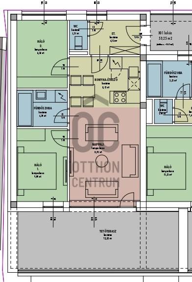 Eladásra kínálunk egy 53,25 m²-es, nappali + 2 hálószobás újépítésű lakást 23,85 m²-es, hatalmas terasszal, mely közvetlen kapcsolatot biztosít a privát, zárt udvari kerthez.A modern alaprajz tágas nappali–étkező–konyha teret, két külön hálószobát, fürdőszobát, külön WC-t és közlekedőt kínál. A leendő tulajdonos teljes mértékben személyre szabhatja a belső kialakítást, beleértve a falszíneket, belső ajtókat, burkolatokat, szanitereket és világítótesteket.Főbb jellemzők:- Kertkapcsolat: közvetlen kijárat a privát, zárt udvarba- Épület: modern társasház, lift és teremgarázs- Energetika: A+ besorolás, alacsony fenntartási költségek- Fűtés/hűtés: korszerű hőszivattyús rendszer, télen-nyáron optimális hőmérséklet- Kivitelezés: magas minőségű anyagok, prémium színvonal- Parkolás: opcionálisan vásárolható teremgarázs beálló, tárolóval vagy anélkülEz a lakás tökéletes választás mindazoknak, akik modern technológiát, energiatakarékosságot és a városközpont közelségét keresik, valamint fontos számukra a kényelem és a minőség.Ne hagyja ki ezt a kivételes lehetőséget – most még saját ízlésére formálhatja új otthonát!