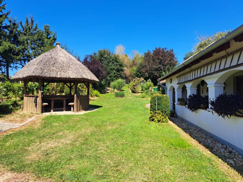 Körmendtől 13 km-re Döröskén, vegyes falazatú tégla és vályog családi ház 1 km-re a Döröskei tótól eladó! A ház egyszintes, melynek lakóterében 3 darab külön nyíló hálószoba, konyha mely étkezésre is alkalmas, egy zuhanyzóval és káddal ellátott fürdőszoba, valamint egy külön helyiségben található toalett lett kialakítva. Nyílászárói hőszigetelt műanyagok. Fűtése gáz központi fűtés. Csatorna nincsen a faluban, zárt derítős. A telek 2500 nm.A házzal egybeépülve kialakítás került egy külön bejáratú úgynevezett Party helyiség , ahol a család, barátok, ismerősök együtt ünnepelhetik a feledhetetlen pillanatokat, legyen szó akár egy kerti buliról, születésnapról, vagy egyéb összejövetelről.A házhoz tartozik továbbá egy zárt műhely rész, amely minden kézi szerszámokkal felszerelt amelyek az esetleges javításokhoz és a ház időnkénti karbantartásához szükségesek. Továbbá fedett kocsibeálló , illetve utánfutó- vagy egyéb kerti gépek tárolására alkalmas szintén fedett tároló rész található az ingatlanban. Az ingatlan vételára tartalmazza a ház teljes berendezését, bútorokkal, gépekkel és egyéb berendezésekkel, felszerelésekkel együtt. Új tulajdonosa azonnal beköltözhet új otthonába, mely már berendezve várja lakóját, megkímélve őt a költözés minden egyéb fáradalmától. A ház 2003-ban teljes körű átalakításon és bővítésen esett át. A felújítás kiterjedt: a teljesen új vízhálózatra, villanyrendszerre, fűtés korszerűsítés kiépítésére! Új gázkazán, és új radiátorok lettek beszerelve! A ház teljes tetőszerkezete ki lett cserélve. Az építkezés teljes folyamatáról fényképek lettek készítve, jelenlegi tulajdonosa kérésre megmutatja őket! Mivel a ház falazata vastag, nyáron gyakorlatilag klímaként funkcionál, nincsen szükség klíma berendezések beszerelésére! A kert gyönyörűen van karbantartva, parkosítva, örökzöld növényekkel, minden évszakban nyíló virágokkal, számtalan gyümölcsfákkal, konyha kerttel. A kert elülső részén egy fedett kiülős fa pavilon, kerti kút padokkal. A telek hátsó részében lehetőség van egy nagyobb méretű medence felállítására, mely körül teljesen térkövesített, ahol egy kis külön álló fa házikóban lehet tárolni a medencéhez szükséges kellékeket. Az egész telek zárt, körbekerített. A telek végén lehetőség van elvonulásokra, meditációra az árnyékot és hangulatot adó fákkal körülvett árnyas és nyugodt erdős részen. Bográcsozó, grillsütő minden meg van oldva! Sőt a tornác fedett részére kiülve, akár reggelizés közben vagy akár az esti meghitt beszélgetések közben a csend, béke, meghitt együttlét 5 csillagos otthont varázsol az otthonából.Kérésére további képeket is tudok küldeni az ingatlanról! Az ingatlan tehermentes, tulajdoni viszonyok rendezettek. A környék csendes és biztonságos, könnyen megközelíthető, ami lehetővé teszi, hogy valóban otthon érezze magát.Bármilyen kérdése van az ingatlannal vagy a vásárlási folyamattal kapcsolatban, megszeretné tekinteni, keressen bizalommal!Ügyfeleinket ingyenes szakszerű tanácsadással látjuk el, bank-semleges hitel-ügyintézésben segítjük, illetve leszervezzük a teljes adás-vételi folyamatot!