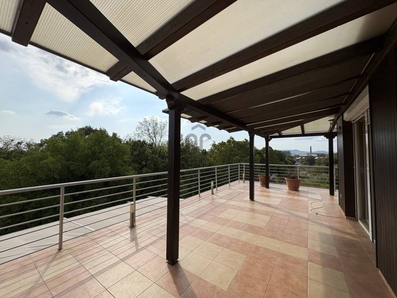 Fedezze fel ezt a különleges tetőterasszal rendelkező lakást a Népliget parkja mellett!A 80 m2-es lakás egy csodaszép nagy, ugyancsak 80 m2-es terasszal rendelkezik, ami a zöld parkra néz. Kinti vízcsappal és tusolóval is ellátott, ami igazi felüdülés a forró nyári napokra. A lakás egy külső szigetelést is kapott, ami a fűtés-szempontjából nagy előnyt jelent. A nappaliba, az előtérbe és a szobákba is egyedi bambusz parketta került, ami hibátlan állapotú. Magas minőségű beépített gépesített konyhabútor található a konyhában. Innen egy kisebb kamra nyílik, ami egy teljes polcrendszerrel beépíthető. A szobákban hűtő-fűtő klímák gondoskodnak az otthon kényelméről. Az előtérben egy teljes hosszú tükörajtós beépített szekrény található, ahová az egész család ruhatára belefér. A szekrénnyel szemben lévő üvegfal pedig egy egyedi dizájnt és világosságot kölcsönöz a lakásnak. A vételár részét képezi egy saját kocsibeálló a társasház alatti teremgarázsban. A házhoz tartozik saját kert is, ahol kicsitől nagyig mindenki megtalálja a kedvére való elfoglaltságot. A parkból átjár egy mókus, úgy hogy garantált a jó hangulat:)Az ingatlan per és tehermentes, azonnal költözhető.Jöjjön el és nézze meg álmai otthonát!