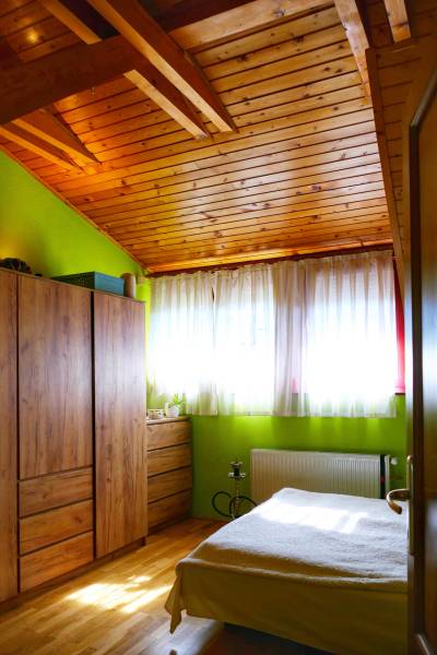 CSOBÁNKA csendes zsák utcájában, panorámás családi ház, egyik lakása (ikerház) része eladóA családi ház ügyvéd általi megosztással két külön lakásra osztható- 2005-ben épült- MEDITERRÁN hangulatú, otthonos - szigetelt-tégla építésű- belső kétszintes, tetőtéri-keleti fekvésű- bruttó 154,28 nm-40 nm tágas nappali, kandallóval, bel magassága 4 méter , látszó gerendákkal , különleges hangulattal- hegyekre néző , panorámás nappali, nagy ablak felületekkel, terasszal- világos tágas konyha étkezővel, egyedileg gyártott fa bútorokkal - három nagy szoba - nagy dupla mosdós , sarokkádas fürdőszoba , épített bútorral - gardrób szoba- fűtés gázcirkóval , valamint a nappaliban kandallóval lehetséges- egyéni megrendelésre gyártott fa nyílászárók, dupla üveggel- összközműves, saját mérőórákkal- önálló garázs a telek első részében, mely egy nagyobb, vagy két kisebb autó beállására alkalmas ( tégla építésű, jól szigetelt- saját önálló kert is tartozik a lakáshoz kb 200 nm- teraszos kialakítású a kert,- fedett terasz - az utca aszfaltos, a lakáshoz díszkő burkolaton keresztül sétálhatunk fel.- a kert rendezett , gyönyörű , fák , örökzöldek , cserjék , bokrok sokasága , valamint virágzó növények színesítik Tömegközlekedés, óvoda iskola, bevásárlási lehetőség séta távolságban. Sportolási lehetőség , túrázás, kerékpározás , kirándulás , kedvelt túra útvonalakon .