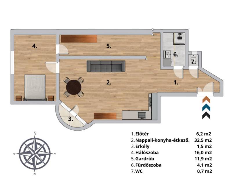 Új tulajdonosát keresi Budapest VII. kerületében, Középső-Erzsébetváros pezsgő, belvárosi zónájában egy tágas, világos, felújított, 1. emeleti, erkélyes, azonnal költözhető lakást. Praktikus elrendezésének köszönhetően ideális választás egyedülállóknak, pároknak, vagy akár befektetési célra is.A LAKÁS JELLEMZŐI:- Első emeleti, 71,5 m2-es, 2 szobás, modern ingatlan. - 5 éve egy nagyobb lakás kettéosztásával került kialakításra.- Teljes körű felújítása 5 éve történt modern és minőségi anyagok felhasználásával.- Elosztása: előtér, amerikai konyhás nappali és étkező, gardrób, hálószoba, fürdőszoba, külön WC.- Világos és tágas, logikusan bútorozható terekkel rendelkezik.- A nappalihoz 1,5 m²-es erkély kapcsolódik utcai kilátással.- Nyílászárói műanyagok, a nappali tájolása délkeleti, a hálószoba déli fekvésű.- Fűtését és a melegvizet cirkó gázkazán biztosítja.- A hatalmas központi élettér, a nappali-konyha-étkező klimatizált. - A képeken látható bútorzat igény esetén a lakással megvásárolható. - Az ingatlan jogilag osztatlan közös tulajdon, használati megosztó szerződéssel rendelkezik, az ingatlanra hitel nem vehető fel!A HÁZ LEÍRÁSA:- 4 emeletes, átlagos állapotú, tégla építésű, liftes társasház. - A közös terek tiszták és rendezettek, a lift felújításon esett át.A KÖRNYÉKRŐL:- A környék pezsgő, mégis otthonos, nappal nyugodt, este pedig élettel teli.- Kitűnő lokáció, közvetlenül Erzsébetváros pezsgő negyedében, éttermek, bárok, kulturális programok gyalog elérhetők.- Az utca közvetlen közelében megtalálhatók a zsidó negyed gasztronómiai központjai, romkocsmái és kulturális ikonja, a Király utca valamint a Gozsdu udvar.- A közlekedés kiváló, 4–6-os villamos 3–4 perc, Blaha csomópont pár perc.- Az M2 és M4 metró (Keleti pályaudvar), valamint számos buszjárat néhány perc sétára elérhető.- A környék mind rövid-, mind hosszú távú kiadásra keresett, ezért jó megtérülési lehetőséget kínál. Miért ajánljuk?- Belvárosi elhelyezkedés, mégis csendes lakás.- Tágas, élhető terek.- Jó állapot, azonnali költözési lehetőség.- Kiváló infrastruktúra és közlekedés.- Értékálló környék, befektetésnek is ideális.AZ INGATLAN MEGTEKINTHETŐ:- személyesen,- online személyes bejelentkezéssel.FINANSZÍROZÁSBAN – ONLINE IS – SEGÍTÜNK!- Bankfüggetlen hitelcenterünk díjmentesen versenyezteti az összes bank és hitelintézet ajánlatát.- Önnek csak annyi a dolga, hogy egyeztet munkatársunkkal, majd kiválasztja a hosszú távon is legkedvezőbb konstrukciót.- Szakértőink 20 év tapasztalattal, fogyasztóbarát lakáshitelekkel, babaváró hitellel és teljes körű CSOK Plusz és OTTHON START program ügyintézéssel várják.- Időpont-egyeztetéssel munkaidő után is elérhetők.Érdeklődés esetén kérem keressen bizalommal! Kérdéseire szívesen válaszolok.