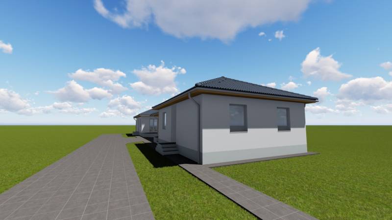FOGLALHATÓ!Dánszentmiklóson – Budapesttől 50 km-re – eladó egy modern, 66,4 m²-es, 3 hálószobás + nappalis ikerházfél, 400 m² KÜLÖN BEJÁRATÚ telekrésszel! A két épületet csak a garázs köti össze, nincs közös fal, nincs összeépítés, a két lakás teljesen külön megközelíthető, kerítéssel elválasztva.Modern kialakítás – alacsony rezsiköltség – kiváló elosztás. A belső térben: előszoba, közlekedő, 3 külön nyíló szoba, fürdőszoba, külön WC, amerikai konyhás nappali, kertkapcsolatos terasszal.Műszaki tartalom: Leier tégla falazat, 15 cm külső hőszigetelés, Bramac Nova tetőcserép, födémen 25 cm szigetelés, 3 rétegű, 6 légkamrás műanyag nyílászárók, redőnyelőkészítés, 10 kW-os hőszivattyús fűtésrendszer padlófűtéssel, Ariston okosbojler, hidegburkolat 9 500 Ft/m²-ig, melegburkolat 7 500 Ft/m²-ig, szaniterek 450 000 Ft-ig, belső ajtók 90 000 Ft-ig, 20 m² viacolorozott kocsibeálló 5 500 Ft/m²-től, max. 6 m²-ig.Átadás: 2026 második fele.Előnyök: referencia munkák megtekinthetők, foglaló után árgarancia, rugalmas fizetési ütemezés.Elhelyezkedés: Dánszentmiklós az M4-es és M5-ös autópályákról könnyen elérhető, Budapest kb. 30 perc alatt megközelíthető. A telek a 405-ös főúttól 4 km-re található.Kapcsolat: Alitisz Judit – 06 20 400 4009. Hívjon bizalommal, hétvégén is rendelkezésre állok!