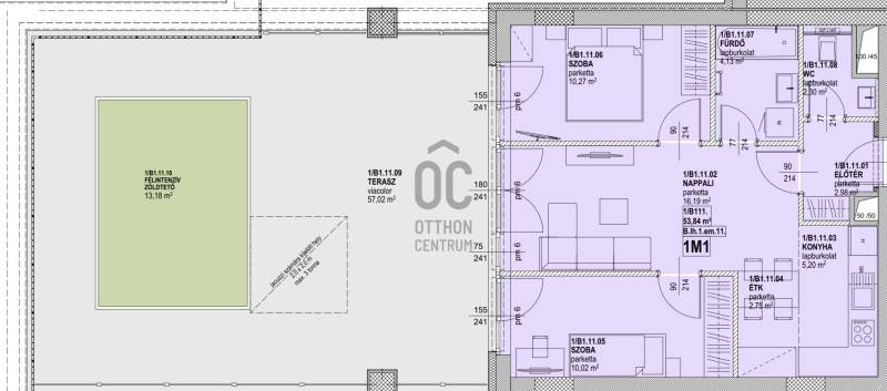 Erkély mérete: 57 m2