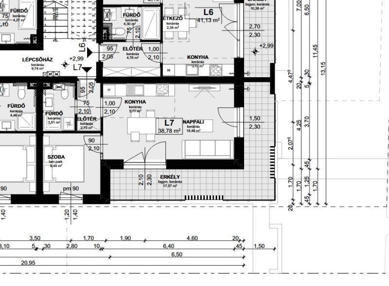 Erkély mérete: 18 m2