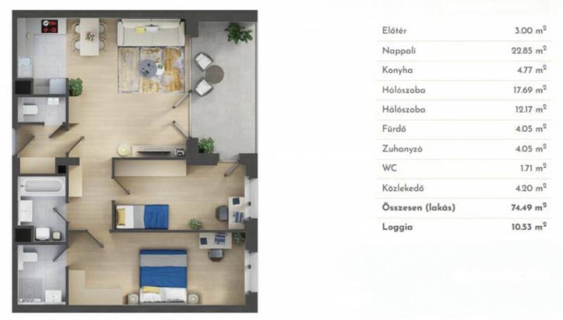 A Marina parton, 2024-ben átadott társasház 2.emeletén, 75 m² alapterületű + 11 m² terasszal rendelkező, gondozott belső kertre néző 3 szobás, duplakomfortos (kádas és zuhanyzós fürdőszobával is rendelkezik), prémium minőségű okosotthon eladó. - A lakás praktikus kialakítása mellett tágas érzetet nyújt, amit jól példáz, hogy az egyik hálószoba közel 18 m², ami ebben a kategóriában igazi ritkaságDUNA TERASZ GRANDEA Duna Terasz Grande a legkorszerűbb technológiával épült, mennyezeti hűtés-fűtéssel és A+ energetikai besorolással biztosítja a maximális kényelmet és energiahatékonyságot. A lakók biztonságát és kényelmét 0–24 órás recepció szintű Portaszolgálat és csomagpont szolgálja. A közösségi élményről panorámás tetőteraszok (jóga, napozó, grill), játszótér és sportolásra alkalmas közösségi terek gondoskodnak.XIII.MARINA PARTA Marina Part nem csupán egy lakópark – egy külön világ a fővárosi lakáskeresők egyik legnépszerűbb kerületében, közel a belvároshoz. Budapest XIII. kerületének egyik legkedveltebb részén, a Duna-part mentén kínál exkluzív, zöldövezeti környezetet, amely ideális választás minden generáció számára – akár otthonteremtésről, akár hosszú távú befektetésről van szó.Modern építészet, kiváló infrastruktúra, vízparti életérzés és nyugodt atmoszféra – mindez csupán 10 percre a város pezsgésétől. A Marina Part valódi oázis azoknak, akik nem akarnak választani kényelem, stílus és lokáció között.Jöjjön el, tapasztalja meg személyesen a Marina Part különleges hangulatát – és találja meg új otthonát a Duna partján. Kérem, keressen bizalommal!