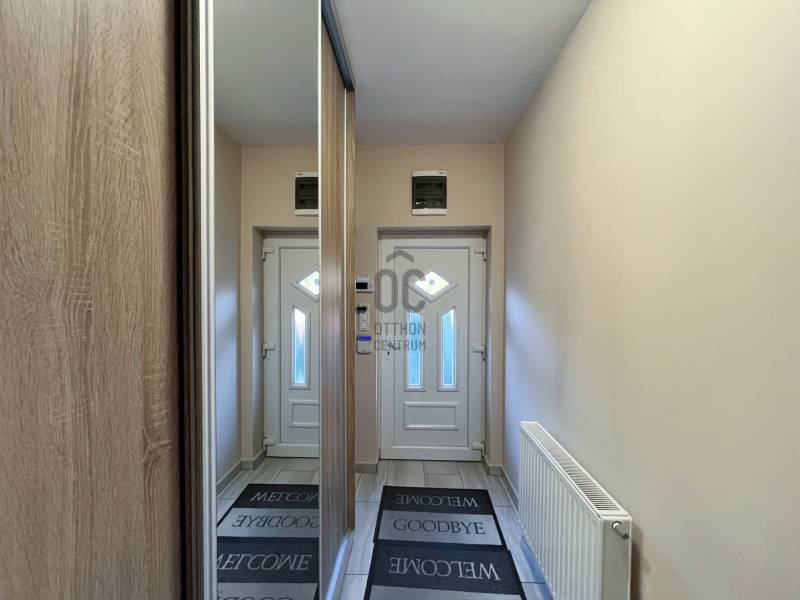 \"DUPLA KOMFORTOS KERTES IKERHÁZ A 18. KERÜLETBEN\"Eladásra kínálunk egy kivételes, ikerházat Budapest 18. kerületének csendes, de jól megközelíthető részén, Újpéteritelepen. Ez az ingatlan ideális választás lehet családosok számára, akik a városi élet nyújtotta kényelmet és a természet közelségét egyaránt keresik. A ház 115 négyzetméteres alapterülettel rendelkezik, amelyben négy tágas szoba található, így bőséges teret biztosít a család minden tagjának. A minimalista kialakítású otthonban a tágas nappali középponti szerepet játszik, ahol a családi együttlétek és baráti összejövetelek könnyedén megrendezhetők. A ház két fürdőszobával rendelkezik, így a reggeli rohanások során sem kell kompromisszumot kötnie a kényelmet illetően. Az amerikai konyha modern és praktikus, tökéletes helyszín a főzéshez és a közös étkezésekhez. Az ingatlanhoz tartozik egy 268 nm-es kert és egy 11,5 négyzetméteres terasz is, ahol élvezheti a friss levegőt és a környező panorámát. A garázsban pedig egy autó kényelmesen elfér, így a parkolás sosem jelenthet gondot. Az ingatlan állapota jó, a fűtés kondenzációs gázkazán rendszerrel megoldott, a nyári hónapokban pedig a klíma biztosítja a kellemes hőmérsékletet. A ház tehermentes, így azonnal birtokba vehető, ami nagy előny a vásárlók számára. A riasztórendszer pedig a biztonságérzetet növeli, így Ön és családja nyugodtan élvezheti új otthonát. Bővebben az ingatlanról:- építés éve: 2016- 15 cm-es homlokzati szigetelés- 3 rétegű műanyag hang- és hőszigetelt nyílászárók (redőnnyel, szúnyoghálóval)- több zónás riasztórendszer- nagy, tágas terek jellemzik- fűtéséről kondenzációs kazán gondoskodik- hűtésére két klíma lett beszerelve (inverteres)- zuhanyzós és kádas fürdőszoba- 15 nm-es garázs, ami közvetlen a házból megközelíthető- 4 nm-es tároló, ami a garázsból megközelíthető- 11,5 nm-es fedett terasz- alacsony rezsiköltségA környék adottságai is figyelemre méltóak. Az ingatlan könnyen megközelíthető autóval, és a közeli tömegközlekedési lehetőségek, mint például buszjáratok, gyors hozzáférést biztosítanak Budapest belvárosához. A csendes utcák és a barátságos szomszédság ideális környezetet teremt a családi élethez. A közelben található parkok és zöld területek remek lehetőséget kínálnak a szabadidő eltöltésére, míg a közeli boltok és szolgáltatások mindennapi kényelmét biztosítják. Bízom benne, hogy ez az ingatlan felkeltette érdeklődését, és szívesen válaszolok bármilyen kérdésére, amely a vásárlással vagy a környékkel kapcsolatban merülne fel. Kérem, ne habozzon kapcsolatba lépni velem, hogy közösen megtalálhassuk az Ön új otthonát!Hívjon a hét bármely napján!