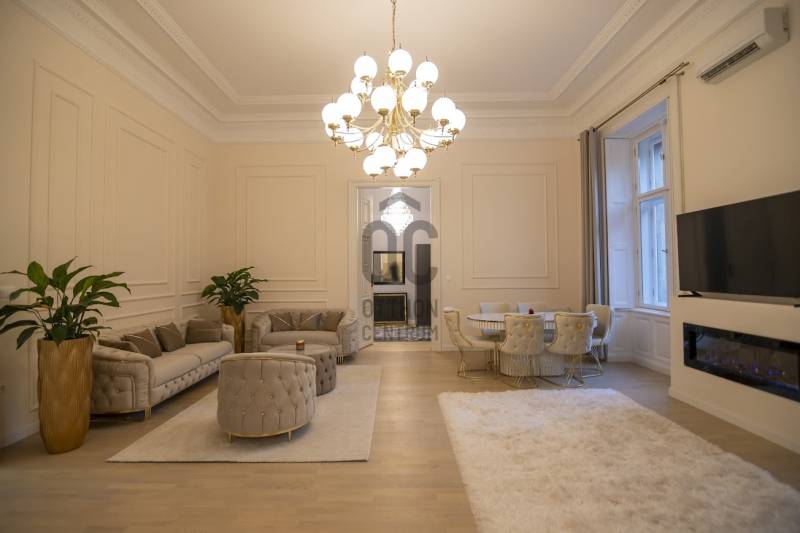 Kiadó luxus polgári lakás az Andrássy úton!Az Andrássy út eleganciáját és történelmi hangulatát ötvözi ez a 160 m²-es, 4 szobás, teljes körűen felújított, napfényben úszó polgári lakás, amely a klasszikus értékeket és a modern kényelmet egyaránt képviseli. Az 1. emeleten elhelyezkedő ingatlan tágas nappalival és 3 hálószobával rendelkezik, belmagassága eléri a 4 métert, amit a gyönyörű gipszstukkók és a spalettás polgári ablakok tesznek igazán impozánssá.A lakás utcai nézetének köszönhetően világos és napos, a hozzá tartozó TERASZ pedig különleges ritkaság a környéken. A belső terek teljesen berendezve, modern és stílusos bútorokkal várják új bérlőjüket, a konyha és a fürdőszoba minden szükséges géppel felszerelt. A lakás műszaki tartalma is a kényelmet szolgálja: gázcirkó fűtés és klímaberendezés gondoskodik az optimális hőmérsékletről.A társasház , lifttel rendelkezik, a belső udvarban pedig PARKOLÁSI LEHETŐSÉG biztosított.A lakás minden részlete új, így a bérlő egy elegáns, kifogástalan állapotú otthonba költözhet be azonnal.Az épület a főváros egyik ikonikus, reprezentatív palotája, amely a 19. század végén épült a sugárút fénykorában. A ház homlokzatát gazdag díszítés, elegáns arányok és impozáns ablakok jellemzik, belső terei a klasszikus polgári hangulatot idézik. Az Andrássy út központi elhelyezkedése miatt a ház közvetlen közelében megtalálhatók a város legnívósabb éttermei, kávézói, divatházai és kulturális intézményei, így az itt bérelhető lakás nem csupán otthon, hanem igazi életstílus is.Számos Éttermek és kávézók: Művész kávéház, Callas Café & Restaurant,Bombay Curry Bar,Hoppá! Bistro,Nem utolsó sorban az OPERA pár perc séta távolságban.A lokáció kiemelkedő: a belvárosi környezet egyszerre nyugodt és pezsgő, kiváló közlekedési lehetőségek: M1, Busz 105, 210, Deák Tér Reptéri Busz 100E, és villamosmegállók (4,6 pár perc sétára.Egyedi igényekre szabott lakáshitelekkel állunk rendelkezésére.Bankfüggetlen Hitelcentrumunk az országban elérhető összes bank és hitelintézet ajánlatát versenyezteti az Ön számára díjmentesen.Munkatársaink nagy szakmai tapasztalattal, teljes körű CSOK PLUSZ és OTTHON START PROGRAM ügyintézéssel várják Önt előre egyeztetett időpontban akár a normál munkaidő után is.Bővebb információért és a megtekintéssel kapcsolatban hívjon bizalommal!