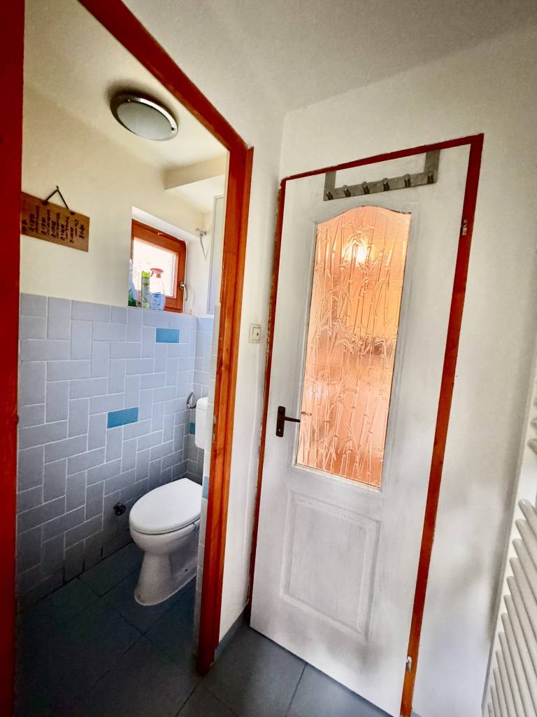 A fürdőszoba közlekedőjéből nyílva egy ajtón keresztül bejutva találjuk az 1,2 m²-es különálló WC-t.A szintek közti közlekedést az ingatlanon belül kialakított lépcsőházon keresztül, stabil vasszerkezetű lépcsőn tudjuk megtenni.A lépcsőházból a felső szintre érkezve egy 6 m²-es erkélyen találjuk magunkat. A tetőtér 11,5 m²-es szobája erről az erkélyről nyílik. Ehhez az emeleti szobához a szoba végéből nyílóan tartozik egy mellékhelyiség (WC+kézmosó) is. Az erkély igény esetén beépíthető, így akár teljes értékű felső szint varázsolható belőle, ezáltal a jövőbeni otthonná formálás lehetősége megvalósítható.Műszaki paraméterekA ház 27-es Porotherm falazatból épült 1993-ban. Fatüzelésű kazán biztosítja a meleget, kiegészítésként villanyradiátorral is kényelmesen fűthető. Az áramellátásról EV kapcsolós 40 Amperes elektromos kialakítás gondoskodik.Az épületben elhelyezkedő minden helyiség ablakkal rendelkezik, ezáltal jól szellőztethető és mindenhova jut természetes fény.Az alsó szinten nagyméretű, német gyártmányú fából készült bukó-nyíló ablakok szúnyoghálóval és redőnnyel is fel vannak szerelve.Gáz nincs az épületben, de a gázcsonk udvaron belülre be van vezetve. A víz és villany be van vezetve az épületbe, a szennyvíz közvetlenül csatornára van kötve. Az ingatlan teljes műszaki felújítása 7 éve történt meg, esztétikai felújítás a lakótéren belül 3 éve. A kertet napfény simogatja, amit az utcától egy vasszerkezetre épült, fával burkolt úszókapu választ el. A kapu jelenleg manuális használható, de távvezérelhetővé alakítható. Az udvarban tudjuk leparkolni az autónkat, de a kapu előtt is kényelmesen meg lehet állni. A tágas kert jól használható pihenésre, veteményes kialakítására, jelenleg is elhelyezkedik rajta néhány gyümölcsfa.Surányban a helyi kisboltok biztosítják a mindennapi szükségleteket, de ha valami különleges kellene, a közeli 11-es Főúton minden megtalálható. Nagyobb élelmiszerüzletek, éttermek, cukrászdák, gyógyszertár, óvoda, iskola.Ez a ház nemcsak egy ingatlan, hanem egy életstílus, ahol a természet szeretettel öleli a hétköznapokat. Csend, szabadság, közelség a városhoz és egy kis falubeli közösség. Itt több mint egy otthon, életérzés születik.Surány mára már nem csupán üdülőövezet, a telekkönyvi valóság szerint háromnegyed része lakóövezet, így egyensúlyban tartja a fejlesztést és a nyugalmat. A környék egyik legnagyobb kincse a csend, a kristálytiszta levegő, a természet hangjai. A sziget egyedülálló, távol a főváros forgatagától, mégis csak pár kilométerre a várostól.A szépen karbantartott homokos Duna-part ideális családi fürdőzésre, és közben ott a nyugalom és a természet közelsége – igazi élmény.Jöjjön el, nézze meg és tegye meg ajánlatát!B.T.