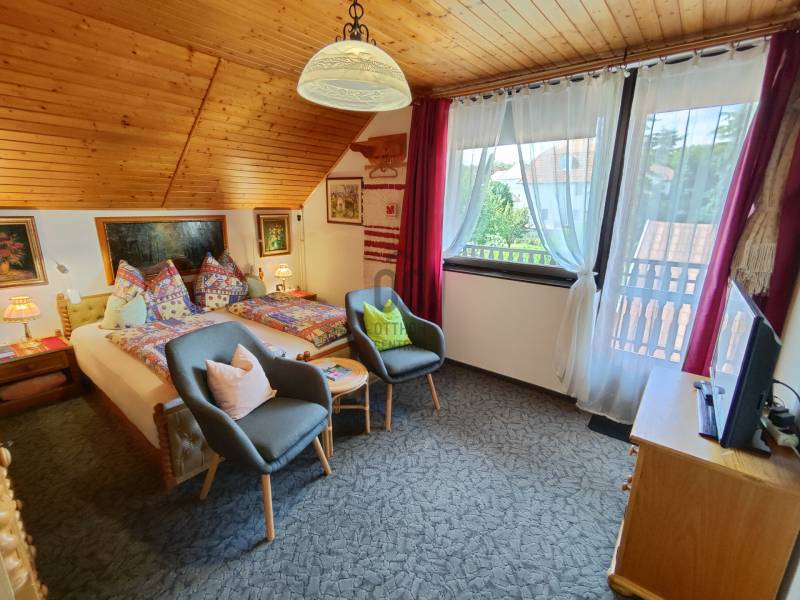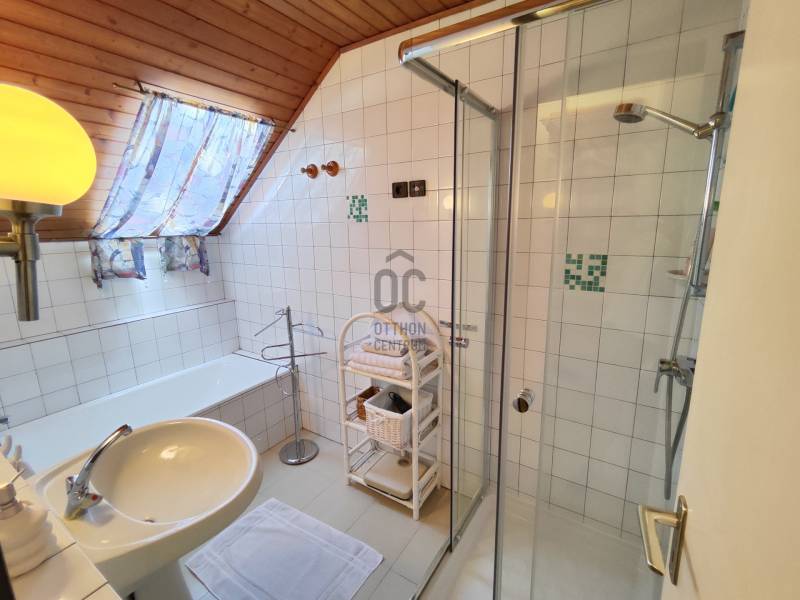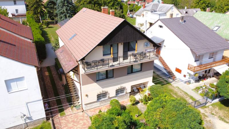 Kiemelt megbízás kizárólag irodánk kínálatában!A 795 m2-es telken elhelyezkedő ingatlan Hévíz egyik kedvelt csendes utcájában található. A jelenleg magánszálláshelyként is működő családi ház kiválló választás befektetésnek vagy akár több generációs lakhatásra is.A 88 m2-es két bejárattal rendelkező középső szinten, lépcsőház, közlekedő, előszoba, tágas nappali konyhával és étkezővel, kamra, fürdőszoba, WC, 2 hálószoba, erkély kapott helyet.A külső és belső bejárattal is megközelíthető 113 m2-es alsó szinten található nagy tároló, kazánház, illetve egy apartman melyben egy konyha-étkezővel, kamra, közlekedő, fürdőszoba/WC, 2db fél szoba, terasz került kialakításra. A legfelső 83 m2-es szinten 2 apartman található, az egyikben konyha-étkezővel, hálószoba, fürdőszoba, WC, erkély. A másikban konyha-étkezővel, 2 hálószoba, Fürdőszoba, WC erkély lett kialakítva.A ház melegéről gáz és vegyestüzelésű kazán, a középső szinten ezek mellett cserépkálya is gondoskodnak, a nyári melegekben pedig klímák a hűtésről.Az udvarban továbbá található egy fedett tásalgó, garázs és 3 fedett kocsibeálló.A ház pár éve 10cm-es külső szigetelést, a kocsibeállók tetején pedig 4 KW-os napelem rendszert kapott.A bútorok megállapodás szerint.Ha a hirdetés felkeltette figyelmét, megtekintés céljából hívjon bizalommal!Az ingatlan a központtól autóval 1 percre, Keszthely központja 8, a Balaton pedig 9 km-re található! Több gyógyfürdő is található a környéken.Így bármely évszak legyen, bármely korosztály számára kikapcsolódási lehetőséget jelenthet ezen fürdők SZÉLES SKÁLÁJÚ WELLNESS SZOLGÁLTATÁSAI! Csodálatos zöld környezetben várja Önt a világon egyedülálló Hévízi gyógytó. A tó körül elterülő erdős parkok és a város védett növényvilága a nyugodt pihenés és gyógyulás záloga. A fürdőváros tiszta levegője és barátságos atmoszférája, az itt-élők vendégszeretet mind fokozzák a gyógyhatást. A tó egész évben várja vendégeit, mivel a víz hőmérséklete télen sem csökken 22 C° alá, nyáron pedig eléri a 38 C°-ot is. A forrásbarlangból másodpercenként előtörő 410 liternek köszönhetően a tó vize három és fél nap alatt teljesen kicserélődik, ezáltal folyamatosan tiszta marad.