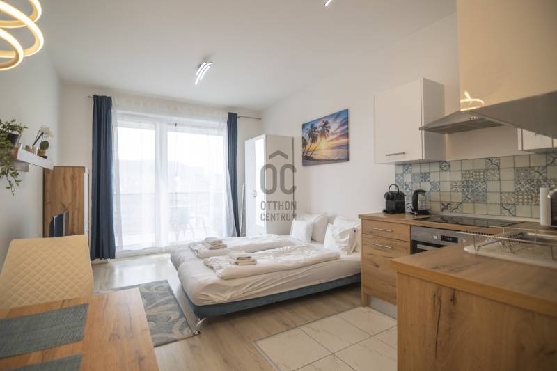 Eladásra kínálok egy 12. emeleti, napfényes studió lakást a Waterfront City szívében, amelyhez egy 4,58 m²-es erkély tartozik panorámás kilátással. A LAKÁS MAGASEMELETI ÍGY RENDKÍVÜL BENAPOZOTT!A lakás kiváló állapotú, világos, barátságos hangulatú, és azonnal költözhető! A LAKÁS GÉPESÍTETT KONYHÁVAL KERÜL ÁTADÁSRA!A Waterfront City Óbuda egyik legfiatalosabb és legdinamikusabban fejlődő városrésze, ahol a mindennapi élet kényelme és a kellemes, vízparti hangulat tökéletes egyensúlyban van.LOKÁCIÓ:- Jó közlekedés: HÉV és több buszjárat néhány perc sétára- Belváros gyorsan elérhető- Fiatalos, pezsgő környék, ahol kávézók, éttermek és szórakozási lehetőségek találhatók- Vízpart közelsége, nyugodt környezetbenA 2022-ben átadott épület modern kialakítású, a hőszivattyús fűtés-hűtés pedig kényelmes, energiatakarékos megoldást kínál, így az ingatlan hosszú távon is értékálló befektetés.Ez a lakás ideális választás azoknak, akik első otthont keresnek, biztonságos befektetést szeretnének, vagy könnyen kiadható, fenntartható ingatlant keresnek.A kompakt méret miatt könnyen fenntartható, mégis minden fontos funkcióval rendelkezik, így tökéletes kombinációja a városi életnek és a vízparti nyugalomnak.Az ingatlan nyugati fekvésű, így kis teraszáról minden nap élvezhetjük a lenyugvó nap utolsó sugarait.A LAKÁST JELENLEG RÖVIDTÁVÚ BÉRBEADÁSSAL ÜZEMELTETIK, ÍGY ÁTLAG FÖLÖTTI HOZAMOT PRODUKÁL ÉS ÖNNEK EGY PERCET SEM KELL VELE FOGLALKOZNIA! Ha felkeltette érdeklődését, keressen bizalommal, és fedezze fel ezt a 12. emeleti panorámás, modern otthont a Waterfront City szívében!A LAKÁSHOZ VÁSÁROLHATÓ GARÁZS IS!