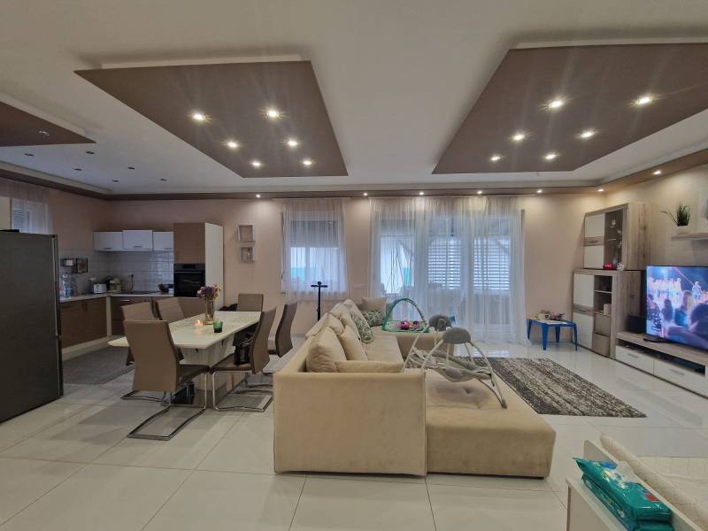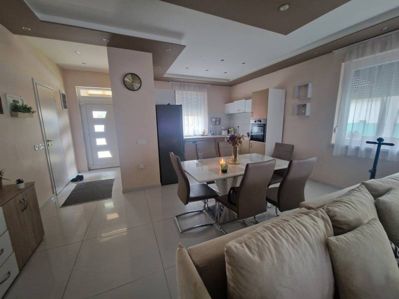 Eladó Dabas városunkban , önálló 93nm.-es lakótérrel+17 nm garázzsal újszerű családi ház.Az épület 4 éve épült ,téglából , 10 cm.-es szigeteléssel, minden újszerű még .Garázskapcsolat a lakótérrel , mely,fűthető .Az ingatlanra már csak egy szép szín , ami tetőfokára emelné .Telke sarki , két bejárat is biztosított így .Udvara parkosított, folyamatos a burkolása. Automata öntözőrendszerrel, fúrt kútról történik az öntözése a gyönyörű fűnek.Kis játszótér és tágas terasz biztosítja a család pihenését,kikapcsolódását.Kapuja egyedi kovácsolt vas. Elektromossága kiépítve.Az ingatlan amerikai konyhás megoldással 3 háló szobával épült meg, melyből az egyiket jelenleg gardrobe-nak használnak.Belső kialakítása modern kivitelezés. Tágas fürdővel rendelkezik.Konyhája gépesített.Fűtése kombi kazánról padlófűtés rendszerű.Nappalijából léphetünk ki a tágas teraszra. Ablakok szúnyoghálóval és redönnyel ellátottak. Terasz ajtó elektromos redönyt kapott.Érdeklődés esetén hívjon bizalommal:Sponga Mária067o431ooo7