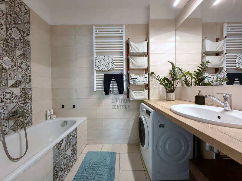 Eladásra kínálok egy 2019-ben épült, 7. emeleti, nettó 70 m²-es, délnyugati tájolású lakást, 4 szobával, két nagy, fedett terasszal.•a nappaliból egy tágas, fedett terasz nyílik,•míg két hálószoba egy másik, közös teraszra kapcsolódik.Főbb jellemzők:•Amerikai konyhás, tágas nappali közvetlen kapcsolattal egy fedett teraszra•3 különnyíló szoba, melyből két szoba saját közös terasszal rendelkezik•70 nm lakótér + 25 nm teraszfelület•2 fürdőszoba (zuhanyzós, kádas) és egy külön WC mosdóval •Modern, nagy teljesítményű Daikin klíma•Alacsony fűtési költség (központi gázkazán)•D-NY tájolású, árnyékolható, így egész évben kellemes klíma •Csendes, mivel nincsenek falszomszédok•Akadálymentesített ház, 2 lifttel•Belmagasság: 265 cmKinek ajánlom?A lakás ideális kisgyermekes családoknak a közeli játszótér, közösségi tér és biztonságos környezet miatt. Ugyanakkor egyetemistáknak is remek választás, hiszen a különnyíló szobák, a 2 fürdőszoba és a külön WC kényelmes együttélést biztosít több lakótárs számára is.Környék, infrastruktúra:A lakás Kelenföldön, a 2019-ben átadott, a modern Bolero 1 lakóparkban található. A környék rendkívül családbarát: játszótér és közösségi tér közvetlenül a ház aljában, a Kopaszi-gát 15 perc alatt elérhető gyalog.Bevásárlási és sportolási lehetőségek: Újbuda Center (Tesco, DM, EcoFamily, Líra, gyógyszertár, csomagautomaták), valamint Flow Boulder falmászóterem és Chilli Fitness 5 pár perc sétára.Közlekedés:•Busz: 33, 133E – 5 perc séta•Villamos: 1-es – 7 perc séta•Villamos: 17, 41, 47, 56-os – 10 perc sétaTovábbi lehetőségek (opcionálisan megvásárolható):•Nagy belmagasságú, polcozott tároló: 5,2 M Ft•Teremgarázs beálló (fedett): 10,4 M FtKöltözhető: 2026. januártólÁTALAKÍTÁSI LEHETŐSÉGA képek között egy átalakítási tervet is láthat, ugyanis a nappali melletti kisebb méretű szoba megszüntetésével a nappali tágasabb lesz. Ez a változtatás műszakilag könnyen megoldható, azoknak a csaádoknak ajánljuk, ahol elegedő 2 hálószoba, viszont nagyobb közös tér szükséges. Ez a lakás tökéletes választás azoknak, akik értékelik a modern, világos tereket, a kiváló infrastruktúrát. A 3 külön szoba, és a két külön terasz adta kényelem mind családoknak, vagy fiatal felnőtteknek remek választás lehet, akik szeretnének kényelmesen, közös és szeparált terekben élni.