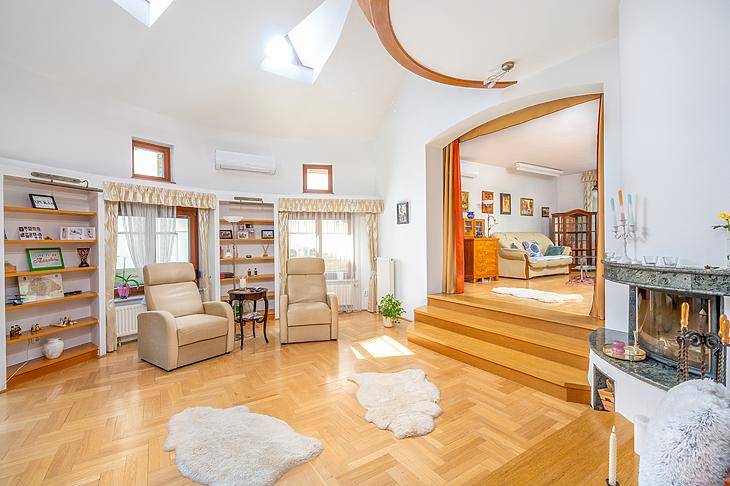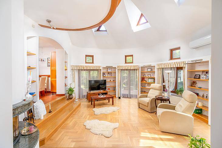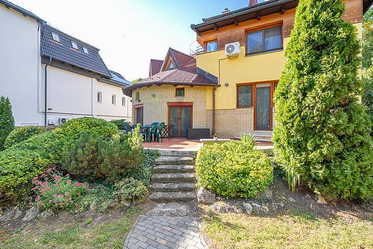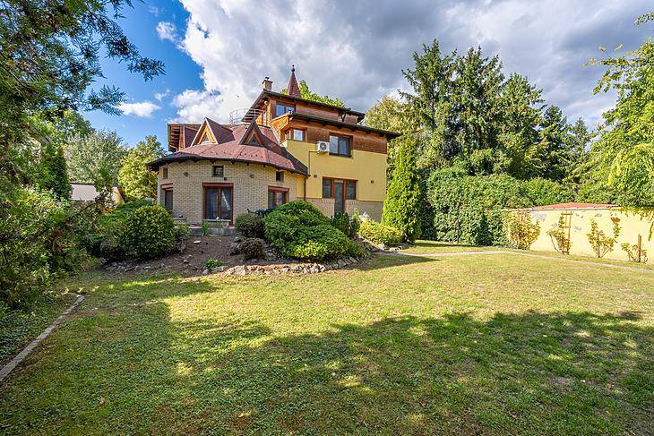 Csillaghegy szívében ELADÓ egy különleges, romantikus CSALÁDIHÁZ!Budapest egyik legkedveltebb kertvárosi részén, Csillaghegy központjában kínálunk megvételre egy igazán különleges, egyedi hangulatú, romantikus családi házat, amely 347 négyzetméteres összterületével, több szintjével és gyönyörű, gondozott kertjével tökéletes OTTHONT nyújt.A 1998-ban épült, masszív, 38 cm-es Porotherm téglából készült épületet az eredeti építtető és tervező gondos odafigyeléssel tájolta, a belső tereket pedig funkcionálisan és esztétikusan alakította ki. A ház egyik különleges eleme a szinteltolásos, körcikk alakú nappali, amely galériás kialakításával, kandallójával és nagy belmagasságával lenyűgöző központi teret biztosít – ez a ház valódi szíve.Az ingatlan 2015-től folyamatosan karbantartott és korszerűsített: az összes külső nyílászáró egyedileg gyártott, ragasztott, tömbösített fa nyílászárók 3 réteg hő- és hangszigetelő üvegezéssel; a homlokzat teljes körű hőszigetelést; a tető pedig vörösréz bádogozással ellátott kanadai zsindely fedést – mindezek alatt további 10 cm vastag szigetelés fokozza az energiahatékonyságot. A belső terek is átgondolt felújításon estek át: parkettacsiszolás, festés, szőnyeg- és lépcsőburkolatok cseréje, valamint az elektromos és gépészeti rendszerek felülvizsgálata történt meg. Illetve beszerelésre került 4 db hűtő-fűtő klíma is, ami nagy segítséget nyújt a nyári meleg időszakban.Az ingatlan négy szinten kínál kényelmet és sokoldalúságot:• Szuterén (92,76 m²): kétállásos garázs (fűtött rámpa), hobby szoba, kazánház, kamra és tárolóhelyek – ideális helyszín akár műhelynek vagy otthoni edzőteremnek.• Földszint (127,98 m² + 29,03 m² terasz): lenyűgöző nappali, dolgozószoba, tágas konyha-étkező, külön mosdó és nappali kerengő. A nagyméretű, fedett terasz a kert felé néz, tökéletes reggeli kávézáshoz vagy esti borozgatáshoz.• Emelet (101,26 m² + 3,73 m² erkély): három tágas hálószoba, gardróbszobák, mosókonyha, fürdő és külön mosdó – a család minden tagja kényelmesen elfér.• Tetőtér (25,59 m² + 4,95 m² erkély): külön beépített szoba és hangulatos tetőerkély – ideális dolgozószobának, vendégszobának vagy tiniszobának.A kert és az udvar külön figyelmet érdemel: 2015-ben teljesen megújult, dísznövényekkel, amerikai tulipánfával, japán birssel, sziklakerttel és automata öntözőrendszerrel felszerelve. A hátsó udvar csendes, intim részében grillező és tűzrakóhely került kialakításra, beton térkő sétánnyal – a baráti összejövetelek kedvenc helyszíne lehet. A gyep alá vakondháló került, így mindig rendezett, zöld környezet várja az új tulajdonosokat.A parkolás a házhoz tartozó garázsban megoldott, de az utcán közvetlenül az ingatlan előtt további három autó számára van hely.Környékről:Közelben minden olyan szolgálatás megtalálható amire szüksége lehet a mindennapokban (kisebb élelmiszer boltok, piac, éttermek, gyógyszertárak illetve strandfürdő is). Gyerekes családoknak nagyon ideális hiszen játszóterek, Óvoda, Iskola, Egyetem van a közelben.Tömegközlekedés szempontjából is tökéletes hiszen pár perc sétára található számos buszmegálló, illetve a H5-ös hév.FINANSZÍROZÁS:Banki finanszírozással is megvásárolható, melyben irodánk ingyenes tanácsadással áll rendelkezésükre!VEVŐINK RÉSZÉRE A KÖZVETÍTÉS DÍJTALAN!A beépített bútorzat a vételár részét képezi.