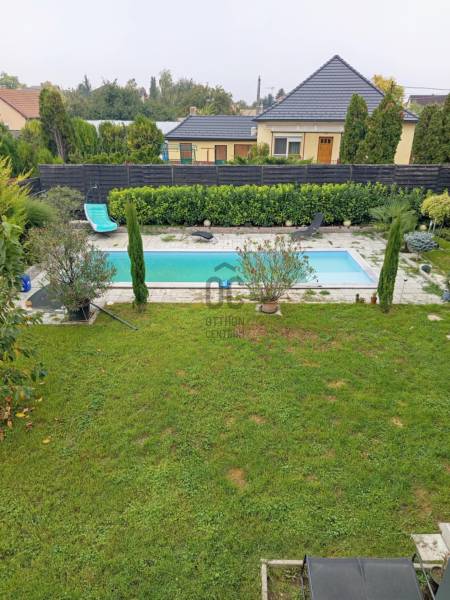 Tatán, egy csendes, mégis központi elhelyezkedésű részen kínálunk megvételre egy kivételes adottságokkal rendelkező, 1990-ben épült, 230 m²-es, kétszintes tégla családi házat, amely egy 784 m²-es, teljesen körbekerített, elszeparált telken helyezkedik el.Főbb jellemzők:230 m² lakótér / kiváló elosztásFöldszint:Tágas előszobaMosókonyhaSzoba (jelenleg \"konditeremként\" funkcionál a tulajdonosoknak, szoláriummal és tusolóval ellátva, mely a vételár részét képezi)Külön WCTágas, amerikai konyhás nappali, klímával felszerelveEmelet:3 különnyíló hálószoba, mindegyik saját gardróbhelyiséggelFürdőszoba - WC3 szoba klímával ellátvaExtrák, amik emelik a komfortot:PadlófűtésElektromos redőnyök3 rétegű nyílászárók2 beállásos garázs elektromos garázskapukkalÉpített, fűthető medence (9 x 3,5 m)Automata öntözőrendszerLapos tető – zöldtető kialakíthatóTöbb autó számára parkolási lehetőségA ház kiváló műszaki állapotban van, mindössze a külső színezés van hátra. Az udvar teljesen zárt és intim, kíváncsiskodó tekintetek kizárva, ideális gyermekes családoknak vagy nyugalmat keresőknek. Nagyon kedves, barátságos szomszédokkal körülvéve.Kinek ajánljuk?Ez az ingatlan tökéletes választás azoknak, akik luxus szintű kényelmet, kiváló elhelyezkedést és igényes kivitelezést keresnek egy tágas, jól megtervezett otthonban – mindezt Tatán, a város egyik legjobb részén!Amennyiben felkeltette érdeklődését az ingatlan, további információért illetve megtekintéssel kapcsolatban várom hívását.