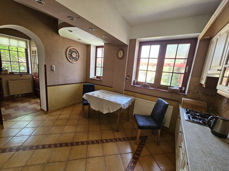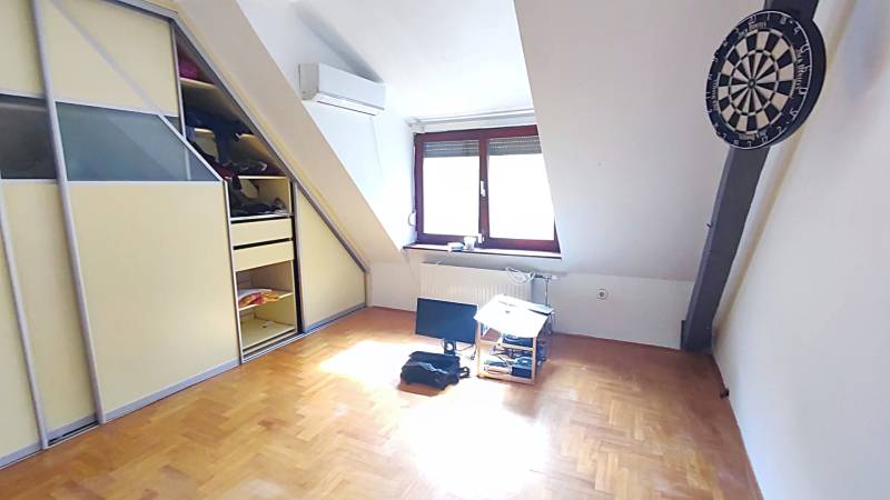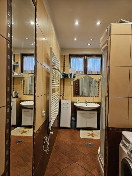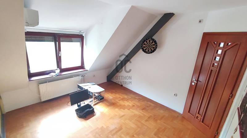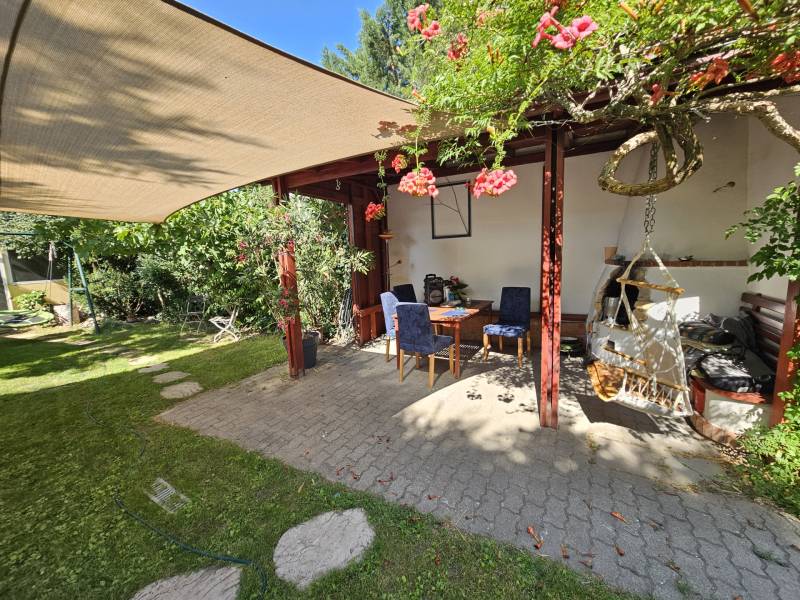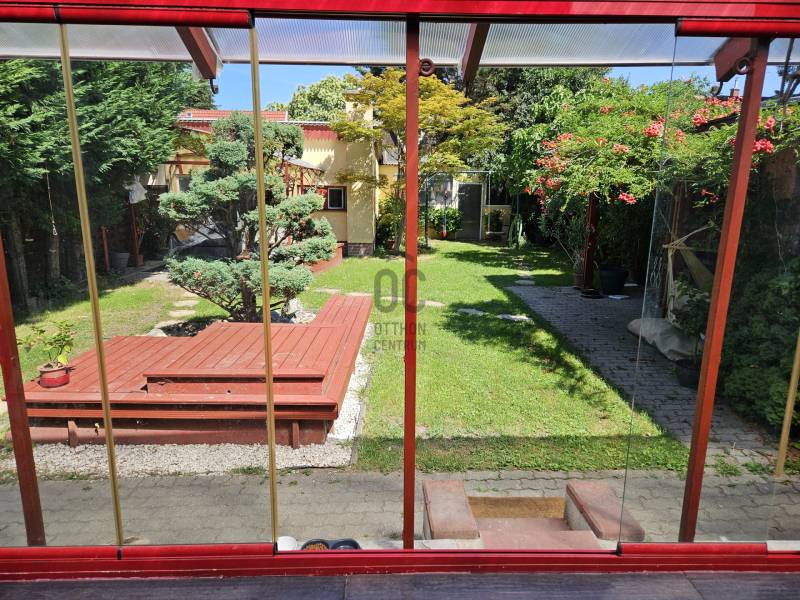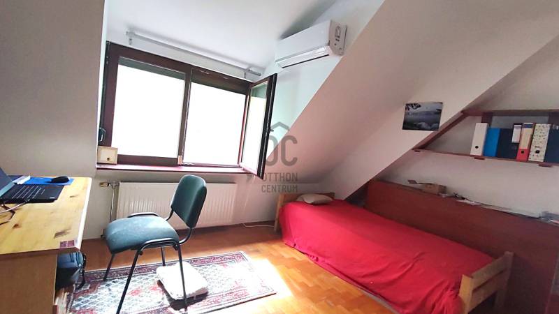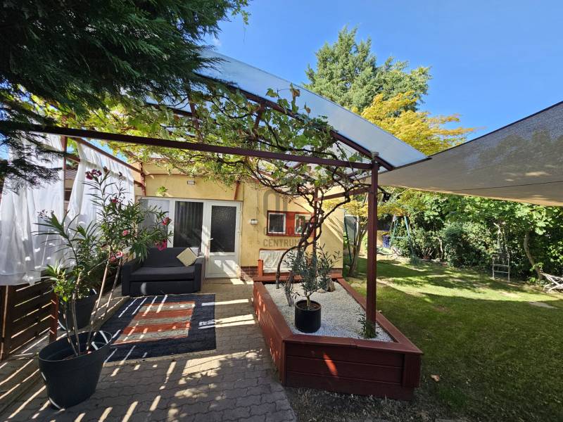 Önálló helyrajzi számú 117 m2-es hőszigetelt családi ház + 26 m2-es garzon, fedett terasszal, szaunával, kondirésszel, borospincével és fedett grillezővel, 406m2 telekkel, parkosított kert.A fedett teraszról előtérbe lépve különálló wc található. A konyha-étkezőn továbbhaladva jutunk el a lépcsőházon át a nappaliba és egy egész szobába. Nappaliból fürdő-wc nyílik. Tetőtérben egy közlekedőből nyílik 2 félszoba és egy egész szoba, valamint a padlófűtött fürdő-wc. Burkolatai jó állapotúak. Nyílászárói jó minőségű fa ablakok, hőszigetelő üvegezéssel.- A+ energetikai besorolás- napelem 6,75kWh- napkollektor+puffertartály- új kondenzációs kazán- radiátor+padlófűtés- 3 db klíma- alacsony rezsiNyugodt, kisforgalmú utca, metró, bevásárlóközpontok, óvodák és iskolák pár perc sétára. Gondozott, belátásmentes kert automata öntözőrendszerrel (ehhez külön vízóra), gépkocsi-beállóval.Kiváló választás családoknak és többgenerációs otthont keresőknek!