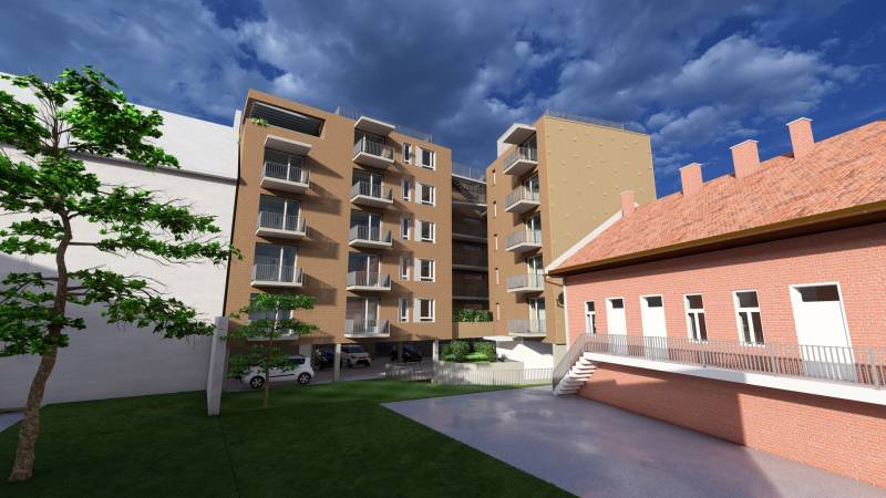 Projekt bemutatásaA Mór utca és Dévényi utca sarkán, egy hangulatos saroktelken épül fel ez a 23 lakásos, modern megjelenésű, mégis a környezetébe harmonikusan illeszkedő társasház. A kivitelezés során kiemelt figyelmet kapott a benapozás, a jól élhető terek kialakítása, valamint a magas műszaki tartalom.Az épület földszint + 5 emelet kialakítású, pinceszinttel, ahol teremgarázs és tárolók is helyet kaptak. Minden szinten ergonomikusan megtervezett, kiváló elosztású lakások találhatók, jellemzően 42–90 m² közötti alapterülettel. A legtöbb lakáshoz saját loggia, erkély vagy terasz tartozik – a felső szinten exkluzív nagy teraszos lakások kerültek kialakításra.A társasház minden szempontból megfelel a mai kor elvárásainak:– 23 parkolóhely (12 a pinceszinten, 11 a földszinten), Elektromos autó töltési lehetőséggel– 6 tároló,– zöldtető és közösségi tetőkert,– geotermikus hőszivattyús fűtés és hűtés,– padlófűtés, fan-coil hűtés,– háromrétegű nyílászárók, korszerű hő- és hangszigetelés,– liftes megközelítés minden szinten.Az épület anyaghasználata prémium minőségű: terrakotta árnyalatú burkolólapok, világosszürke betonhatású elemek és szignálfehér falfelületek teszik igazán különlegessé a házat.A kiváló infrastruktúrájú környék – Jász utca, Lehel út, Róbert Károly körút, M3-as közelsége – garantálja a gyors közlekedést, míg a környező parkok, új fejlesztések és szolgáltatások emelik a lakók életminőségét.Ez a projekt ideális választás lehet városi otthont keresőknek, tudatos befektetőknek és azoknak, akik értékelik a magas minőséget és az élhető, modern lakókörnyezetet.