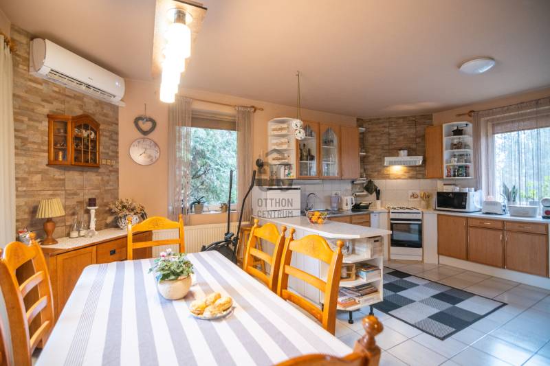 Sóskút Rózsadombján – Tágas, napfényes otthon extra lehetőségekkel!Eladó egy 200 m²-es, 5 szobás, kétszintes családi ház 642 m²-es telekkel, csendes, átmenő forgalomtól mentes zsákutcában, Budapesttől mindössze néhány percre!A ház főbb előnyei:• 5 külön nyíló szoba + tágas nappali-étkező-konyha• Világos, nagy ablakos, barátságos terek• Kandalló + gázcirkó + hűtő-fűtő klíma – ideális hőérzet egész évben• 20 m²-es hangulatos terasz és gondozott, intim kert• Garázs aknával + további kényelmes parkolás a ház előtt• Kiváló állapotú épület – masszív falazat, minőségi tető• Csend, természet, friss levegő – és közben gyors elérhetőség az M7-re és az Etele térreA házhoz tartozik még egy külön, 100 m²-es félszuterén szint, amely kiválóan használható:✔ Otthoni vállalkozáshoz / szalonhoz ✔ Külön bejáratú bérbe adható lakrésznek✔ Hobbiszobának vagy edzőteremnekVagy akár többgeneráció együttélésére is lehetőséget biztosít. Sóskút előnyei:• Biztonságos, rendezett település• Óvoda, iskola, orvosi rendelő, boltok helyben• Lovardák, erdős túraútvonalak pár perc sétáraEz az otthon többet ad, mint egy ház:Életteret + munkateret + pihenést egyben.Jöjjön el és nézze meg – itt azonnal érezni fogja a hely hangulatát!Megtekintés rugalmasan, előre egyeztetve.