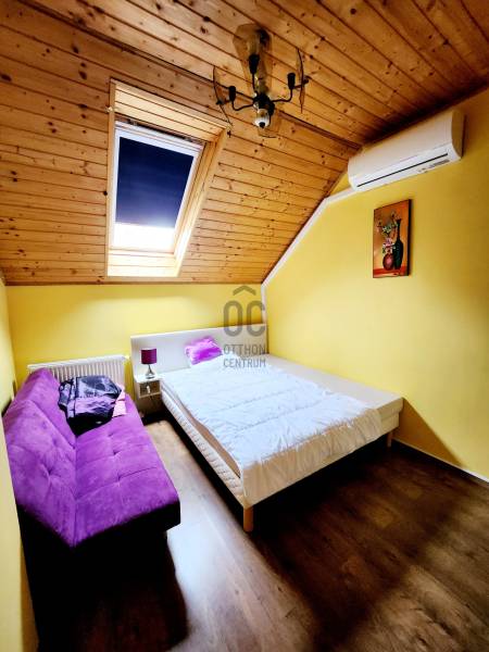 Siófok Belvárosában - több generáció számára is tökéletesen alkalmas ingatlant kínálunk bérbeadásra.Ez a családi ház 130 négyzetméteres alapterületével és 911 négyzetméteres telek méretével tágas teret biztosít.Az ingatlan öt szobával és két fürdőszobával rendelkezik. A földszinten tágas konyha, 1 hálószoba és fürdőszoba WC-vel található, míg az emeleten további 3 hálószoba, konyha és egy további fürdőszoba WC-vel található. A ház kiváló állapotban van. Fűtési rendeszere modern gáz (cirko) fűtés. Minden helyisèg hűtő -fűtő klímával felszerelt, ezen kívül kandalló is rendelkezésre áll.Az ingatlan bútorozott, azonnal használatba vehető.Az erkélyről a gondozott kertre látunk rá. A látvány nagyon szèp ès megnyugtató. Ez egy hîvogató Ingatlanajánlat Siófok Belvárosában! Mindössze 900 méterre a Balatontól, Siófok szívében!A kiadó dupla komfortos családi ház, egy lenyűgöző, 3 házból álló mini lakóparkban található. Rendezett, saját használatú elkerített, parkosított, térkövezett udvarával ez az otthon igazi különlegesség.Az optim kandalló meghitt hangulatot teremt az estékhez.A parkosított, térkövezett udvar teljes kényelmet és élményt nyújt.Külön gáz-, villany- és vízórák pedig garantálják a gazdaságos és átlátható rezsi költségeket.A környék adottságai rendkívül kedvezőek. Siófok Belvárosa nem csupán a nyári turizmus középpontja, hanem egész évben élénk élettel bír. A közelben számos étterem, bolt és szórakozási lehetőség található, így a lakók mindig megtalálják a számukra megfelelő kikapcsolódást.A közlekedési lehetőségek is kiválóak, a városban található busz- és vonatállomások könnyen megközelíthetők.A parkolás is megoldható, 2 gèpkocsi beálló áll rendelkezèsre az elektromos kapun belül, 3 a kapu előtt, ez szintén fontos szempont lehet.Kèt havi kaució szüksèges.A környék biztonságos és csendes. Barátságos szomszédság és rendezett közterületek találhatóak, így valóban otthon érezheti magát.Amennyiben bármilyen kérdése lenne az ingatlannal vagy a bérbeadási lehetőségekkel kapcsolatban, kérem, ne habozzon keresni! Bizalommal állunk rendelkezésére, hogy segítsünk Önnek megtalálni a legjobb megoldást!