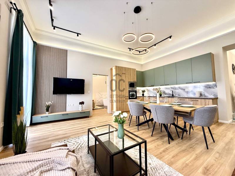 Eladásra kínálunk egy gyönyörű, 88 m2-es lakást a belvárosban a 7. kerületben.Az ingatlan 88 négyzetméteres 3 hálószobával, 1 amerikai konyhás nappalival és 2 fürdőszobával rendelkezik, így ideális lehet nagyobb csoportok vagy családok számára is.A lakás teljesen újjáépített, minden részletében maximálisan igényes, rendkívül praktikus és magas színvonalú műszaki felszereltségű otthon vár új lakójára.A felújítás mindent érintett: a gépészetet (elektromos hálózat, vízvezeték, stb), a burkolatokat és a nyílászárókat is.A lakás fűtése, melegvíz ellátása egyedileg történik. (Új gáz cirkó)Gépesített konyha, teljes berendezés.Az ingatlan a 4. emeleten helyezkedik el, liftes házban.Néhány éve történt meg a a belső udvar, a körfolyosók, a lépcsőház és a külső belső felújítása.Közlekedés, kikapcsolódás, mindennapi dolgok:A lakás elhelyezkedése páratlan: a pezsgő, mégis otthonos Erzsébet körút közvetlen közelében hangulatos cukrászdák, kávézók(mint például a New York Kávéház), éttermek és bárok sorakoznak.Emellett elegáns szállodák találhatók, mint a Boscolo Budapest, a Hotel Nemzeti Budapest MGallery, vagy a Ibis Styles Budapest Center. Az utcában helyet kapott a híres Madách Színház, amely kulturális programokkal teszi teljessé az itt élők életét.Az épület előtt indul a 4-es és 6-os villamos,és pár perc alatt elérhetővé teszik az Oktogont vagy a Blaha Lujza teret. A Blaha Lujza téren közvetlen átszállási lehetőség nyílik az M2-es metróra, valamint több buszjáratra is (5, 7, 7E, 8E, 108E, 110, 112, 133E, 178), amelyek gyors összeköttetést biztosítanak Budapest szinte minden pontjával. Az Oktogon felől az M1 metróvonal is elérhető.A modern belvárosi lakás nemcsak lakóhelyként, hanem befektetési lehetőségként is kiemelkedő választás.Amennyiben felkeltette érdeklődését ez a különleges ingatlan, kérem, ne habozzon kapcsolatba lépni velem.Szívesen válaszolok kérdéseire, és segítek Önnek megtalálni a legjobb megoldást ingatlanvásárlási terveihez.A bizalom és a szakértelem a legfontosabb számunkra, így bármilyen információra van szüksége, állok rendelkezésére.
