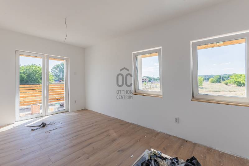 KIEMELT AJÁNLAT!Kiváló referenciákkal!A fényképeken korábban értékesített referenciák láthatók. A látványtervek és a telekről készült képek mutatják a jelenlegi ingatlant.ÚJONNAN ÉPÜLŐ LAKÓPARKBAN, a Waldorf iskolától 2 utcára épül ez az ÚJÉPÍTÉSŰ IKERHÁZ.Egymással mindössze egy tárolónál érintkezve, teljesen SZEPARÁLT KERTRÉSZEKKEL.A helyiek által kedvelt CSENDES, ZÖLD UTCÁBAN, KITŰNŐ MINŐSÉGBEN készül, 460 m2 saját telken.Itt biztosan megtalálja a nyugalmat, aki arra vágyik.Ezen a területen nincsenek és nem is lesznek látható kábelek, ez egy rendezett, újonnan épülő lakópark.Az épület 40cm vastag fallal épül, műanyag nyílászárókkal 3 rétegű hőszigetelt üvegezéssel, Terrán Zenit Resistor Onix tetőcserép fedéssel, hőszivattyú kiállással, padlófűtéssel, napelem-, riasztó-, és klímaelőkészítéssel, illetve egy klíma egységgel a nappaliban.A hálószobákba laminált padló, a többi helyiségbe járólap kerül, de ez most még igény szerint módosítható.A FŰTÉSE és a FENNTARTÁSA KEDVEZŐ, a korábbi referenciákkal kapcsolatos tapasztalatok alapján a TELJES HAVI REZSI legfeljebb 40-45 ezer forint, és napelemmel REZSIMENTES tud lenni az ingatlan.Napelem beszerzését és kedvezményes beszerelését az ár megbeszélés alapján tartalmazhatja.Fúrt kút is található a telken, bemért, iható vízzel.Csatorna kiépítése után az utca és a környék is aszfaltozva lesz.Az építés jelenleg is zajlik, ezért a BURKOLATOKAT Ön még KIVÁLASZTHATJA, igényeit megadhatja, így a lehető legjobb időben van.Az egyik fél már elkelt, a másik még elérhető.Nettó 99 m2 lakótér, nappali+2 szoba, 2 fürdőszoba és garázs.Igény szerint a garázs még kérhető szobaként, akkor nappali+3 hálószobás lesz az ingatlan, ebben az esetben egy fedett, viacolorozott autóbeállót is tartalmaz az ár.10 percen belül szinte minden elérhető: busz, ovi, suli, boltok posta, cukrászda, virágos, gyógyszertár, benzinkút, stb.ÁTADÁS 2026. május 31-ig, igény szerint hamarabb.Minimum 10 % foglalóval és 20% önerővel LEKÖTHETŐ.CSOK, Hitel, Babaváró és illeték visszatérítés igényelhető rá.Nagyon jó választás mind az ingatlan, mind a lokáció.Hívjon bizalommal a hét bármely napján!Amennyiben saját ingatlanja eladásához a mi irodánkat választja, ezt minőségi szolgáltatások és kedvező feltételek mellett vállaljuk.Az ingatlan CSOK igénybevétele esetén illetékmentes!CSOK, Babaváró, Lakásfelújtás, Támogatott hitelek? Irodánk minden állami támogatás és lakáshitel igény kapcsán DÍJMENTES és SZAKÉRTŐ segítséget nyújt!Igény szerint profi ügyvédi hátteret is biztosítunk.