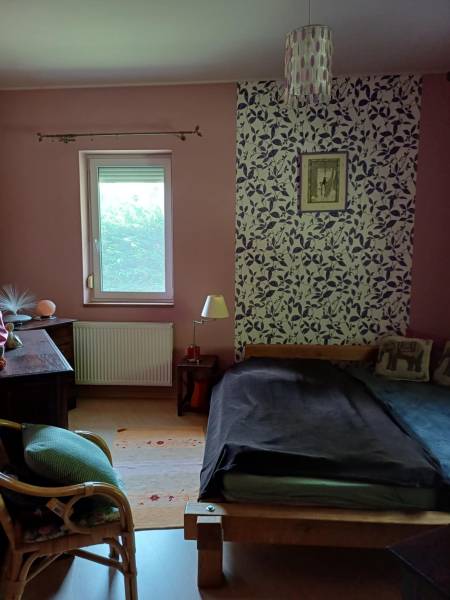 Csodálatos kert, egyedi stílus a Pilis szívében!Eladó Pilisvörösvártól nem messze, Piliscsaba Garancsligeti részén, nyugodt környezetben található egy 1119 m²-es, gyönyörű kerttel rendelkező, kétszintes családi ház.Az ingatlan 2008-ban épült, 38-as téglafalazattal és külső, 15 cm vastag hőszigeteléssel.Belső kialakítása egyedi:-felső szinten (95 nm): előtér, 3 szoba, fürdőszoba, WC, gardrób rész, egy kis szintkülönbséggel tágas nappali+konyha+étkező teraszkapcsolattal és egy télikerttel, lépcsőlejáró az alsó szintre-szuterénszinten: fűthető garázs, szauna zuhanyzóval, mosdóval, fedett kocsibeálló.A fűtés gázkazánnal működik, hidegburkolatos részeken padlófűtéssel.Az utcafronti- és garázskapu elektromos.Az egész telek telis-tele van gyönyörű növényekkel (gyertyán, galagonya, ringló, tiszafa, hársfa, ginkgo, füge, cseresznye-, meggyfa, vérszilva, színes virágok, stb. :)). Még gyógynövényes rész is helyett kapott a kertben. Hangulatos kis kiülős részek vannak az érett növényzet között. :)Ez a ház és kert egy igazi csoda, ha szereti a különleges hangulatot! :)Budapest kb. 40 perc vonattal.A közelben számos kirándulási lehetőség.Ha további kérdése lenne vagy megtekintené az ingatlant, kérem hívjon!Őri Klaudia 20/253-2522